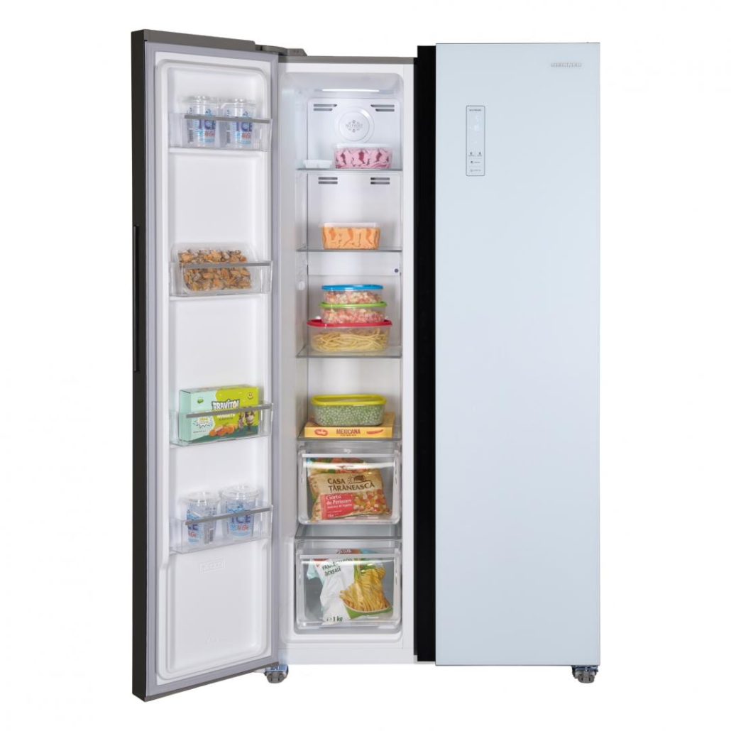 Система Full No Frost обеспечивает равномерную циркуляцию холодного воздуха, что, благодаря отсутствию влажности, предотвращает образование льда, обеспечивая идеальное хранение продуктов. Вам больше не нужно размораживать холодильник или морозильную камеру, что экономит время круглый год. Электронное управление со светодиодным дисплеем и сенсорным управлением. Вы можете легко и быстро установить температуру в холодильной и морозильной камерах, а также желаемый режим работы одним нажатием кнопки. Элегантный дизайн белых стеклянных дверей идеально впишется в любую кухню, независимо от того, классический она или современный стиль.