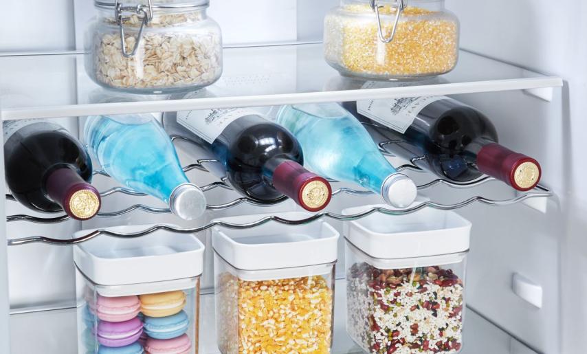 Специальная полка для бутылок прочно фиксирует бутылки вина и безалкогольных напитков, поэтому теперь у вас будет больше пространства для размещения других продуктов на дверце холодильника. Полки Safety Glass из закаленного стекла достаточно прочны для хранения тяжелых предметов. Их материал более крепкий, чем обычное стекло, и более долговечный.