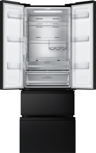 Холодильник с морозильной камерой и «французской дверцей». Благодаря идеальной ширине и первоклассной конструкции с плоской «французской» дверцей новый холодильник Hisense подходит для любой кухни. А встроенный инновационный дозатор для льда и воды удовлетворит вашу ежедневную потребность в прохладительных напитках. Холодильник Hisense Total No Frost обеспечивает идеальные условия для более длительного сохранения свежести и питательности продуктов благодаря отсутствию наморози в холодильнике. То есть вам не придется тратить время на размораживание холодильника с тремя дверцами. Постоянная температура сохраняет свежесть продуктов. Технология Multi Air Flow равномерно распределяет холодный воздух, что позволяет постоянно поддерживать оптимальный уровень температуры в вашем холодильнике. Это обеспечивает идеальное охлаждение продуктов независимо от их места хранения. Функция Super Cool Hisense способна быстро снизить температуру внутри отделения холодильника и поддерживать ее на уровне +2С в течение 6 часов. Это отличный способ сохранить вкус, цвет и пищевую ценность свежих продуктов. Технология Moisture Fresh Crisper Hisense позволяет легко изменять уровень влажности внутри отделения в соответствии с типом продуктов, которые вы храните, без ущерба для свежести и вкуса. Морозильная камера с большим объемом имеет специальное место для замороженной пиццы. А благодаря телескопическим направляющим ящики выдвигаются проще, даже когда они заполнены продуктами.