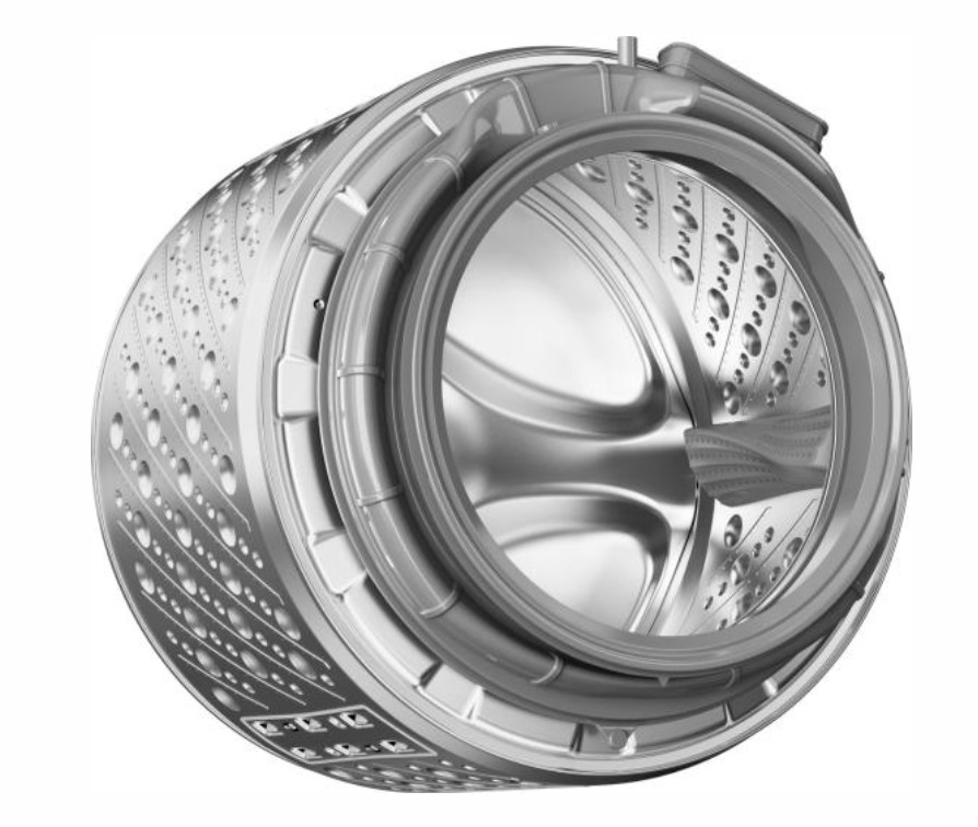 Этот прибор удаляет бактерии из-за очистки барабана и очистки мыльницы, а функция Pure Jet помогает смывать пятна на дверце и с мембраны. Мембрана здесь также изготовлена из стерильного материала. Высокотемпературный пар выпускается из нижней части барабана и полностью проникает в белье, уничтожая 99,9 процента кишечной палочки и золотистого стафилококка на одежде.