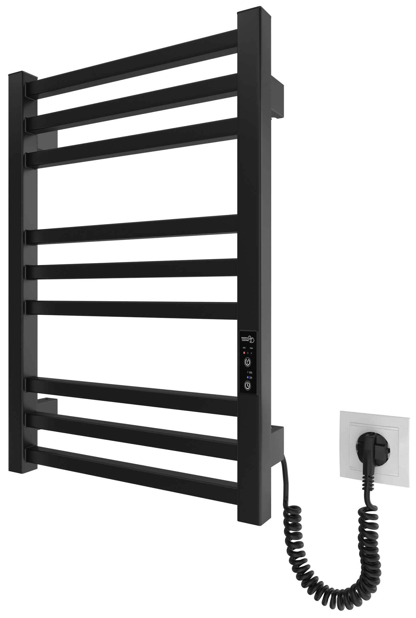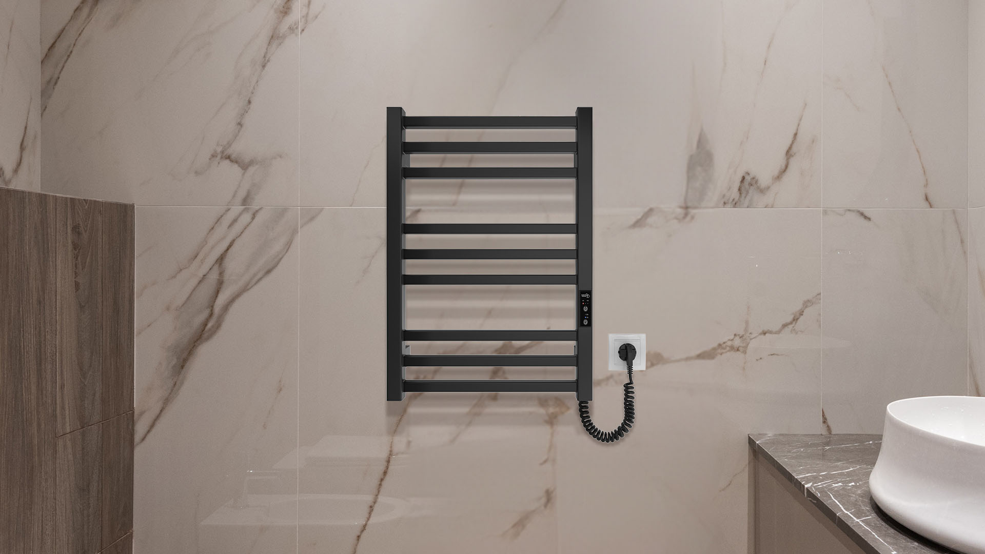 Электрический полотенцесушитель HF London 570×430. Оснащен таймером-регулятором. Включает скрытое подключение. Имеет 9 ребер и стойки из профильной трубы. Варианты отделки: Черный мат, Белый мат. Температурные режимы таймера регулятора: 40C, 45C, 50C. Варианты времени: 3, 6 часов и постоянный нагрев.