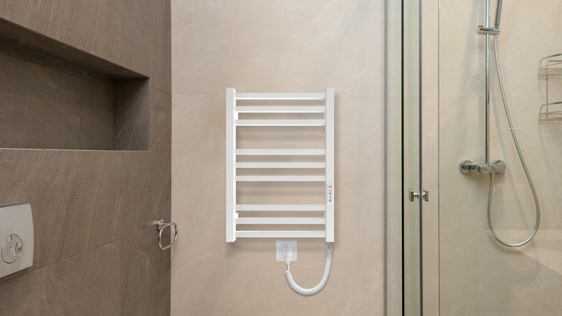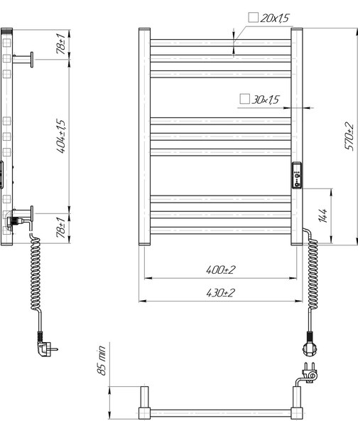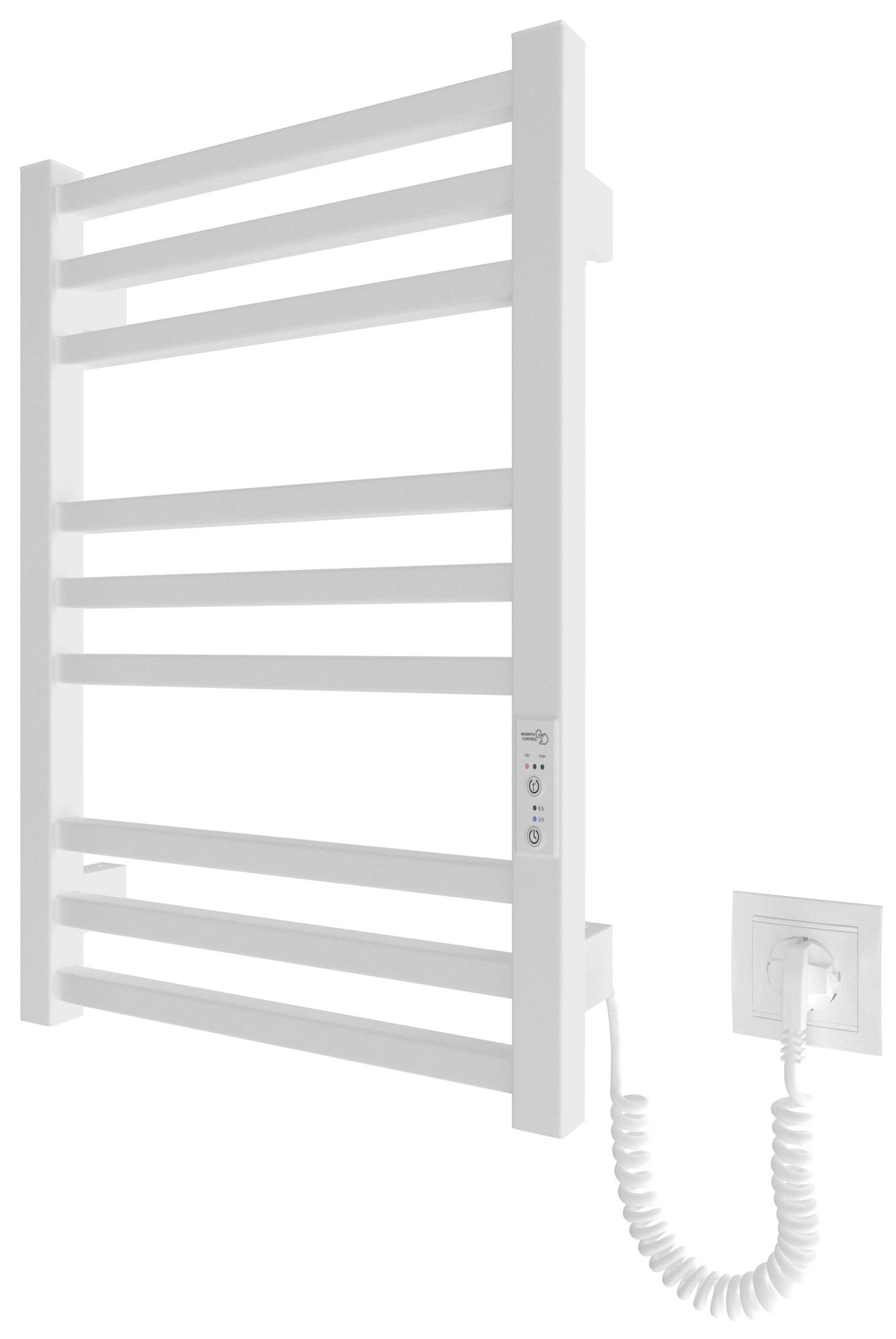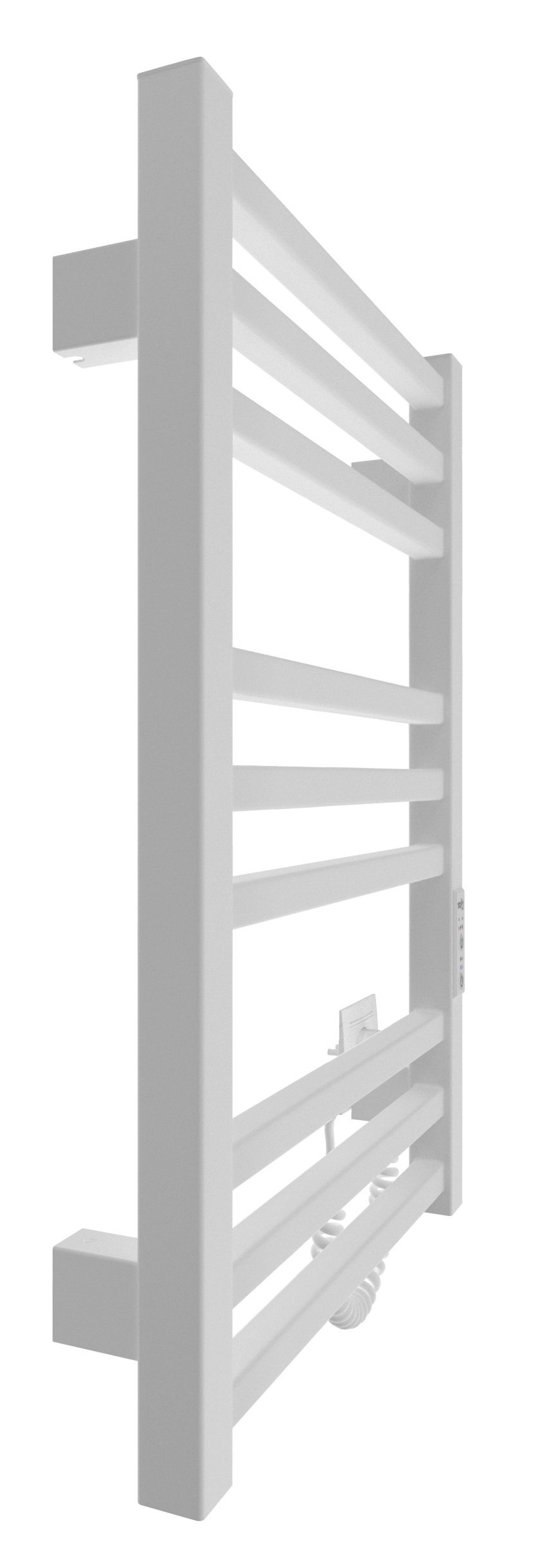 Электрический полотенцесушитель HF London 570×430. Оснащен таймером-регулятором. Включает скрытое подключение. Имеет 9 ребер и стойки из профильной трубы. Варианты отделки: Черный мат, Белый мат. Температурные режимы таймера регулятора: 40C, 45C, 50C. Варианты времени: 3, 6 часов и постоянный нагрев.