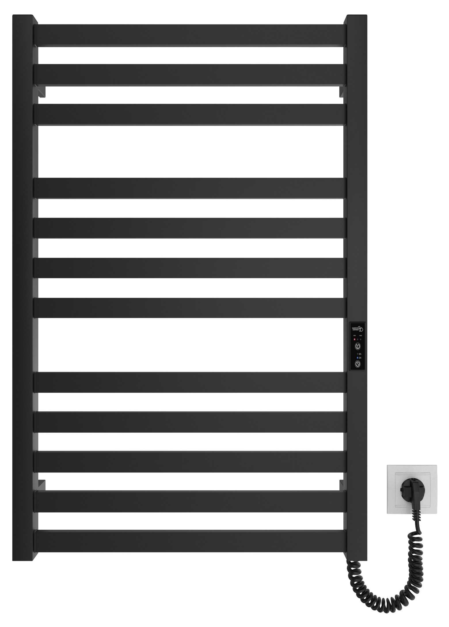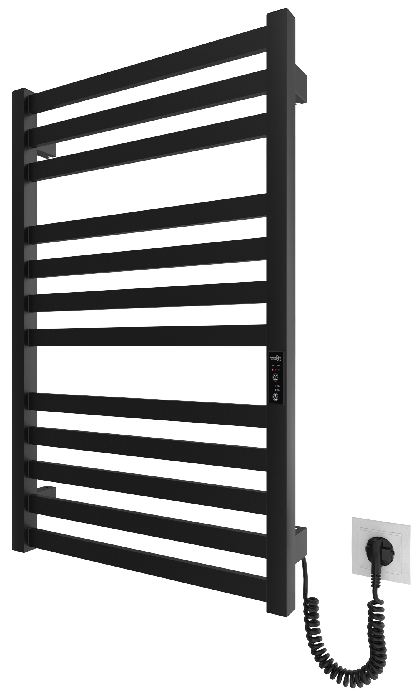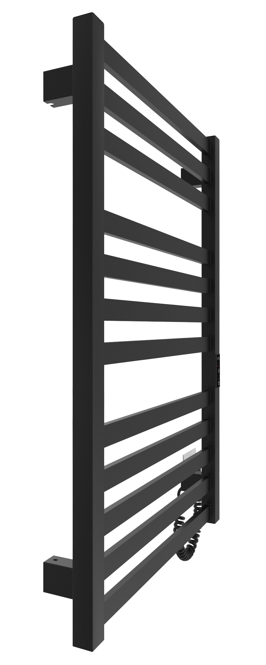 Электрический полотенцесушитель HF Oxford 770х530. Оснащен таймером-регулятором. Включает скрытое подключение. Имеет 12 ребер и стойки из профильной трубы. Варианты отделки: Черный мат, Белый мат. Температурные режимы таймера регулятора: 40C, 45C, 50C. Варианты времени: 3, 6 часов и постоянный нагрев.