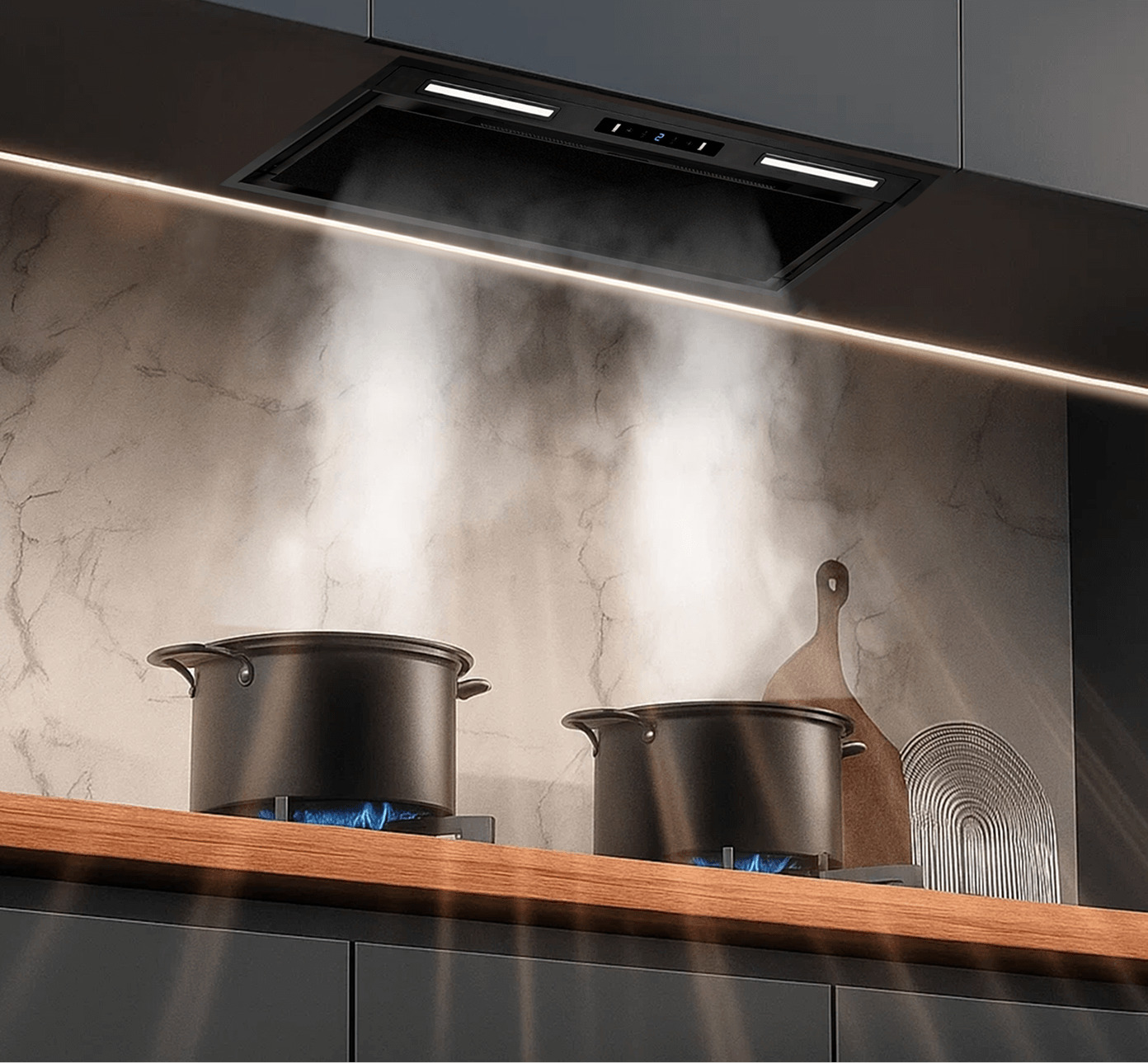 Interline STRONG MATT BL A/60/GL/M INV – кухонная вытяжка премиум-класса из серии STRONG, сочетающая современный матовый черный дизайн и высокую эффективность очистки воздуха. Благодаря ширине 60 см, эта модель подходит для средних и больших кухонь, а стильное матовое покрытие черного цвета прекрасно вписывается в интерьеры в современном или минималистическом стиле. Вытяжка оснащена инверторным двигателем (INV), что гарантирует мощную и тихую работу с высокой производительностью, эффективно устраняя пары, дым и запахи во время приготовления. Управление выполнено сенсорным способом с четкими индикаторами и несколькими уровнями скорости, что позволяет адаптировать работу под текущие потребности. Модель имеет LED подсветку, которая обеспечивает ровное освещение варочной панели, а высококачественные фильтры легко очищаются или заменяются. Interline STRONG MATT BL A/60/GL/M INV – это сочетание эффективности, стильного дизайна, тихой работы и долговечности, которое делает ее отличным решением для ежедневного использования на современной кухне.