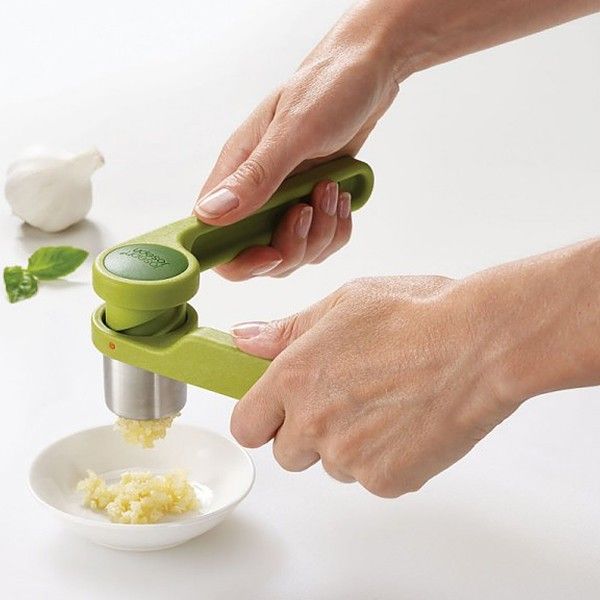 Пресс с уникальным механизмом скручивания помогает получить максимум при минимальных усилиях. Пресс для чеснока позволяет раздавить несколько зубчиков одновременно благодаря особому крутящемуся механизму, многократно увеличивающему силу нажатия. Прочный корпус выполнен из стали и нейлона. Особая форма ручек предотвращает выскальзывание гаджета. Состоит из двух частей, легко разбирается и моется, в том числе в посудомоечной машине.