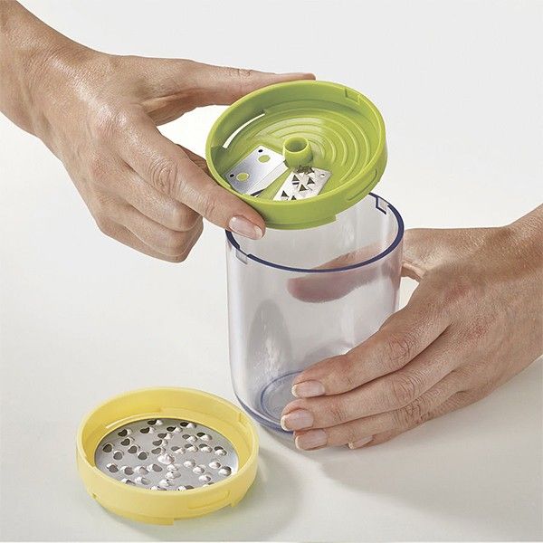 Спиральная терка - это новые возможности при приготовлении обычных блюд. В ней несколько лезвий, которыми вы можете измельчить продукты мелко или крупно, а также насадка для сыра и контейнер для сбора натертых продуктов.