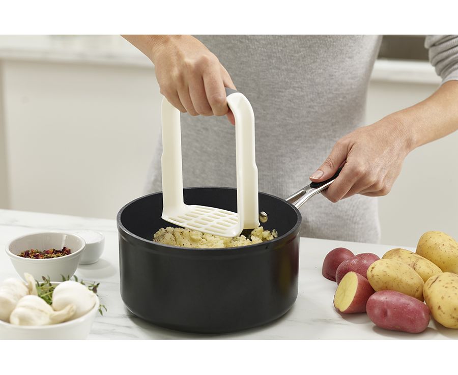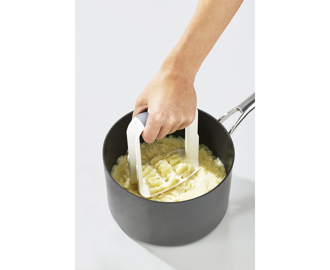 Ручная толкушка Easy-Mash подойдет для приготовления пюре из вареного картофеля, моркови, тыквы, горошка и т.д. Аксессуар удобен и прост в использовании. Эргономичная ручка. Материал: экологически безопасный полипропилен. Закруглённые края удобны для круглых кастрюль. Широкая затирающая поверхность. Оптимальные отверстия для лёгкого мытья.