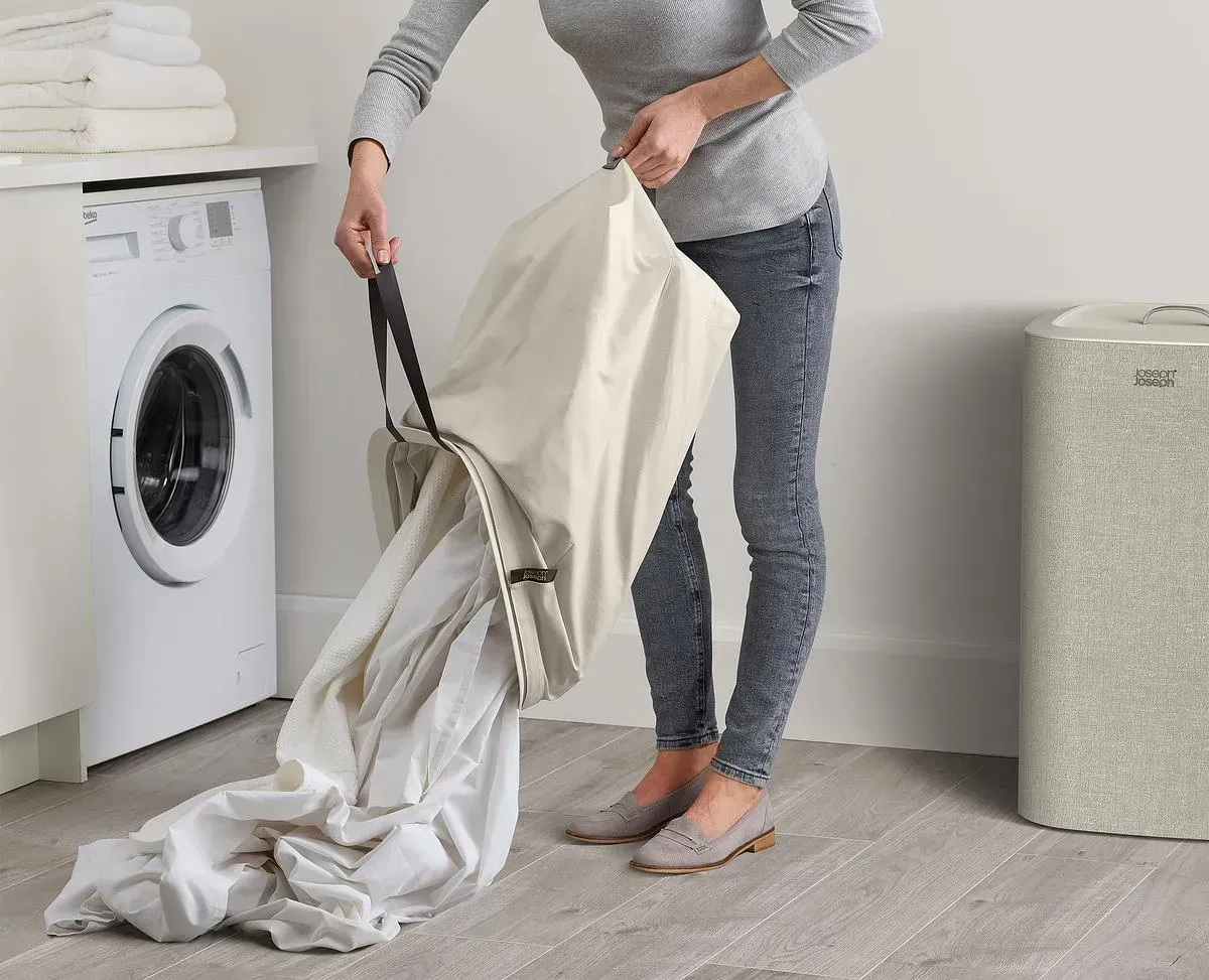 Коллекция Tota One разработана специально для удобного сбора, переноски и стирки белья, делая эти повседневные задачи лёгкими и приятными. Joseph Joseph Tota One Ecru (5000004) создана для максимального удобства. Внутри корзины расположен съёмный тканевый мешок, который легко достать благодаря прочным ручкам. Это позволяет переносить бельё прямо к стиральной машине, не используя дополнительные корзины или пакеты.