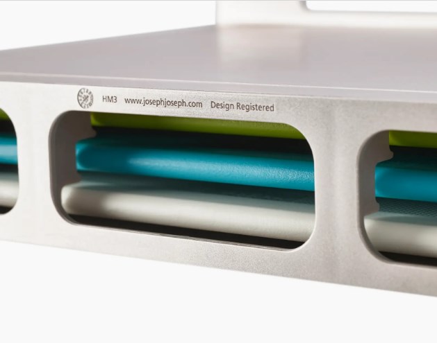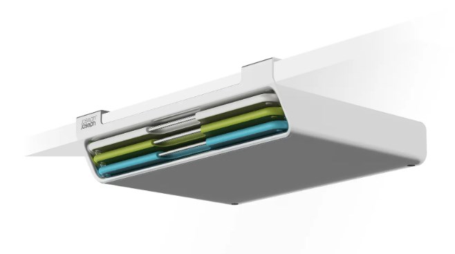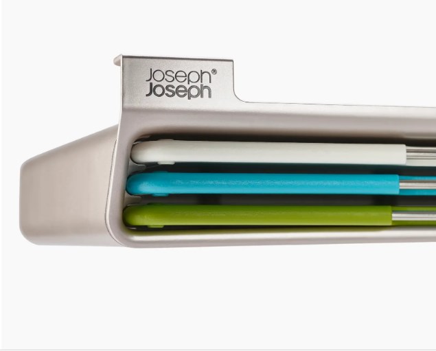 Набор разделочных досок под полку Joseph Joseph Folio 3 пр. разноцветный (60199). Этот инновационный набор разделочных досок эффективно использует пустующее пространство под полкой, тем самым максимально используя каждый сантиметр площади шкафа. В набор входят три разделочные доски с цветовой маркировкой и удобными для ножей текстурированными режущими поверхностями с обеих сторон, стержень из нержавеющей стали и нескользящие ножки. Они хранятся внутри тонкого футляра для хранения, который крепится к существующей полке и крепится сзади двумя маленькими винтами (входят в комплект). Корпус можно установить как внутри шкафа, так и под ним, он имеет многоуровневую конструкцию, что упрощает выбор плат.