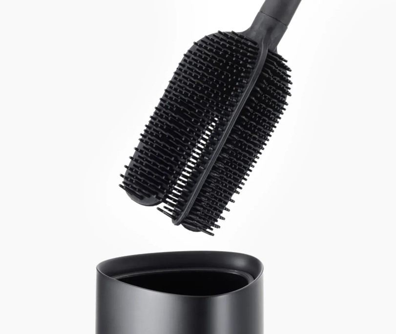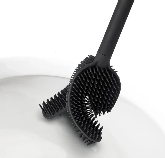 Обычные туалетные щетки содержат грязь и жидкость, что делает их негигиеническим при использовании и чистке. Кроме того, их щетина может деформироваться и изнашиваться, поэтому нужно регулярно менять их. Эта усовершенствованная туалетная щетка имеет гибкую головку тройного действия, очищающую в трех направлениях одновременно. Она имеет широко расположенные щетки, которые предотвращают засорение, позволяют жидкости быстро стекать и являются более прочными, чем обычные щетки.