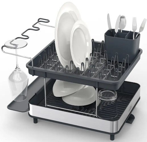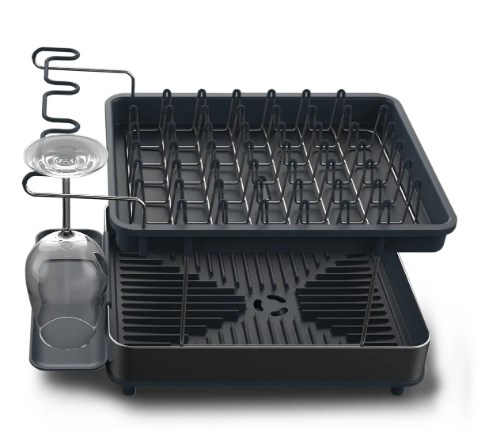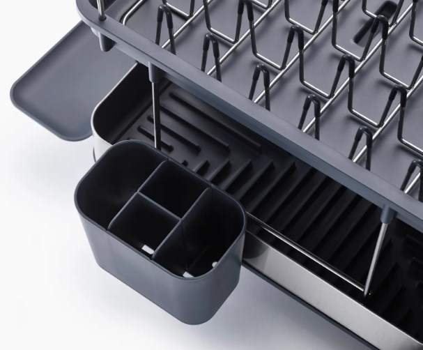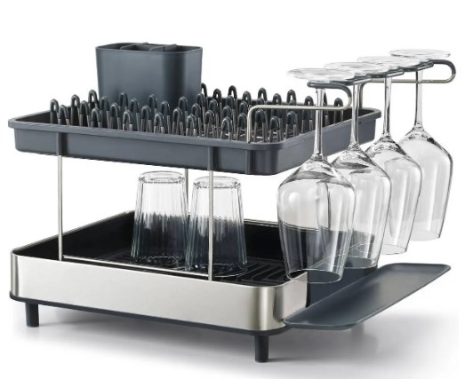 Сушилка для посуды двухъярусная Joseph Joseph Excel Stainless-Steel 851647 – идеальное решение, максимально использующее каждый сантиметр доступного пространства. Она имеет двухуровневую конструкцию, позволяющую складывать большое количество посуды на небольшой площади. Также она оснащена держателем бокалов размером до 26х9 см, что обеспечивает безопасную сушку деликатной стеклянной посуды. Двухъярусная конструкция большой емкости обеспечивает максимальное пространство для слива. Прочный корпус из нержавеющей стали с покрытием, не пропускающим отпечатки пальцев. Держатель для винных бокалов со стойкой к царапинам пластиной для четырех бокалов. Носик для слива и подвижная сушилка для столовых приборов. Быстро дренажная конструкция с поднятыми ребрами предотвращает пропуск воды под стаканы и миски.