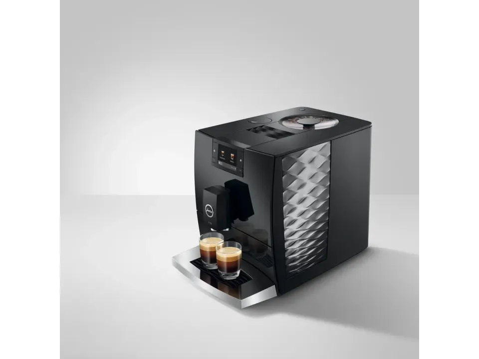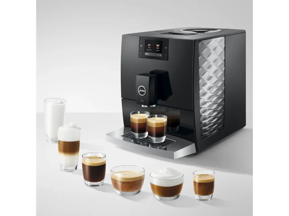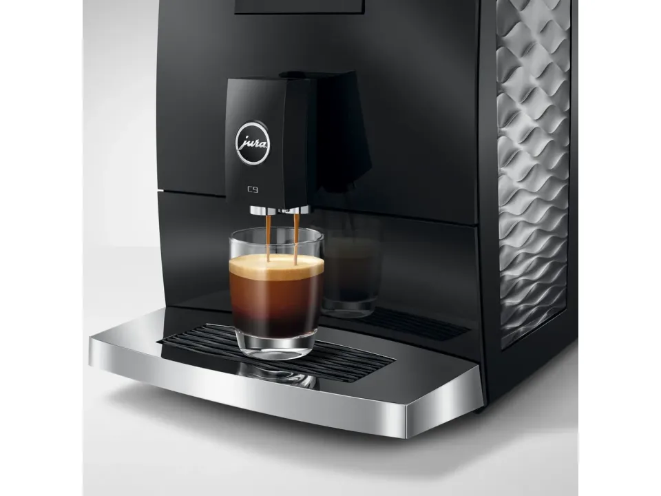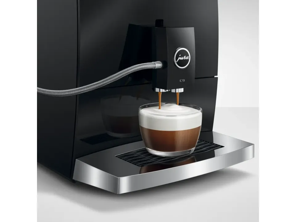 Инновационные технологии C9 позволяют индивидуально регулировать интенсивность аромата, количество кофе и молока, а также температуру. Если хочется выпить чашечку кофе без кофеина, можно воспользоваться отделением для молотого кофе, которое легко активировать через меню. Автоматическая кофемашина опционально оснащена системой Wi-Fi Connect, а также совместима с приложением J.O.E.. Приложение упрощает пользовательские настройки и предлагает дополнительные функции. В дизайн компактной модели C9 заложены особенности премиум-класса JURA. Бункер для воды и хромированная подставка для чашек оформлены с характерными изогнутыми линиями. Выпукло-вогнутая фронтальная часть излучает элегантность и стиль высшего класса, а 2,8-дюймовый цветной дисплей гармонично дополняет образ.