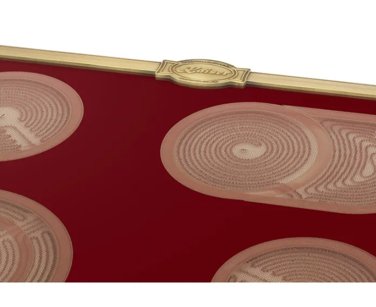 Варочная поверхность премиум класса в элегантном дизайне красного цвета с бронзовыми элементами декора. Эта варочная поверхность сочетает в себе роскошный дизайн с передовыми технологиями для обеспечения непревзойденного опыта приготовления пищи. Изысканная стеклокерамическая поверхность красного цвета. Цельный металлический декор бронзового цвета, который придает поверхности особый шарм и отсылает к прекрасной эпохе ампира. Электронная интеллектуальная система управления обеспечивает полный контроль за всеми функциями прибора. Автоматические программы для приготовления разных блюд. Возможность настройки таймера со звуковым сигналом и отображение времени до завершения на цифровом дисплее. Варочная поверхность оснащена 4 зонами приготовления пищи с технологией QuickHeat Hi Light, обеспечивающей быстрый и равномерный нагрев. Эта варочная поверхность предлагает различные варианты конфорок для удобного и эффективного приготовления различных блюд.