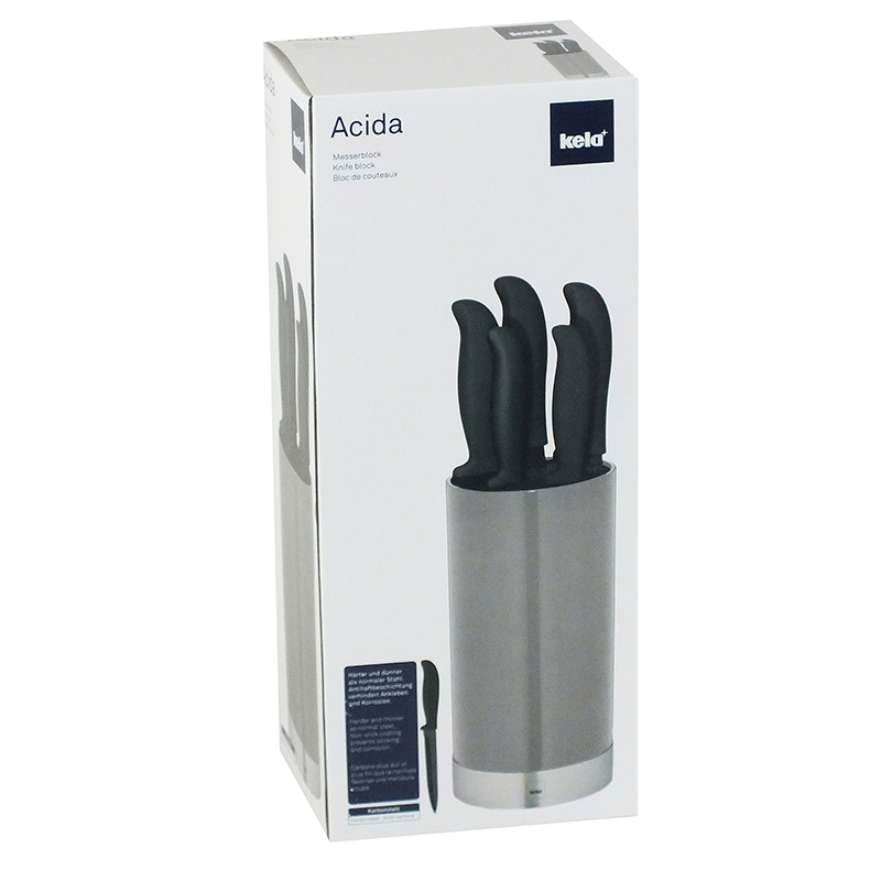 | Комплектация | 1x нож для шеф-повара 8 ", 1x разделочный нож 8", 1x нож для хлеба 8 ", 1x нож для обвалки 5", 1x кухонный нож 3,5 ". Блок для хранения |