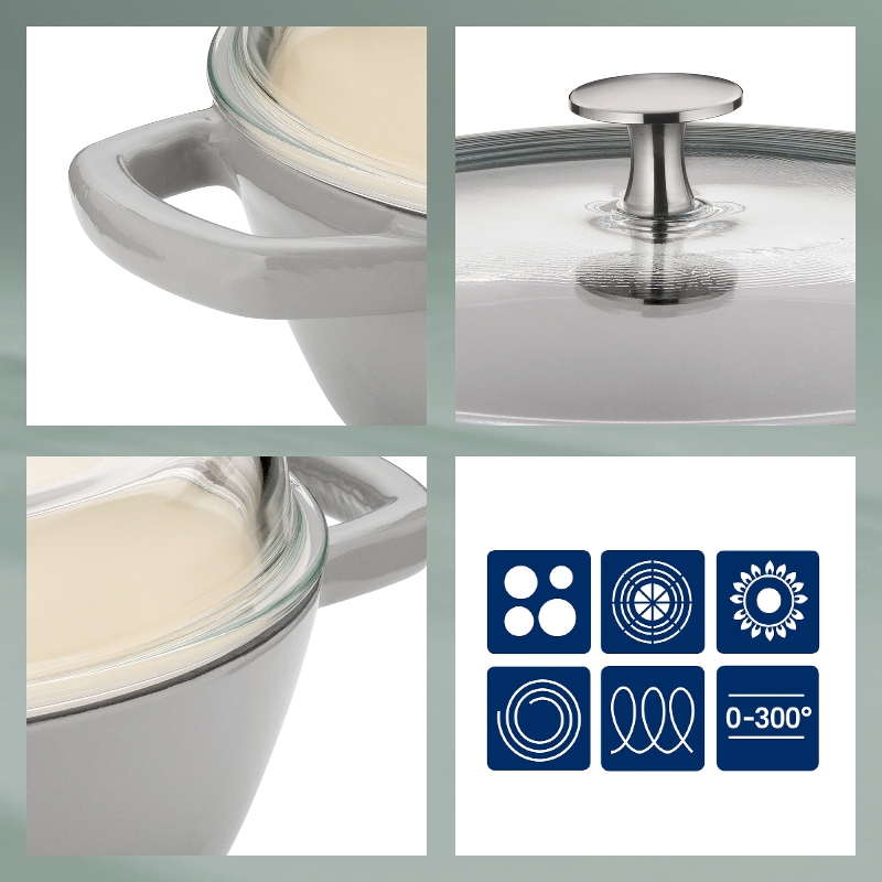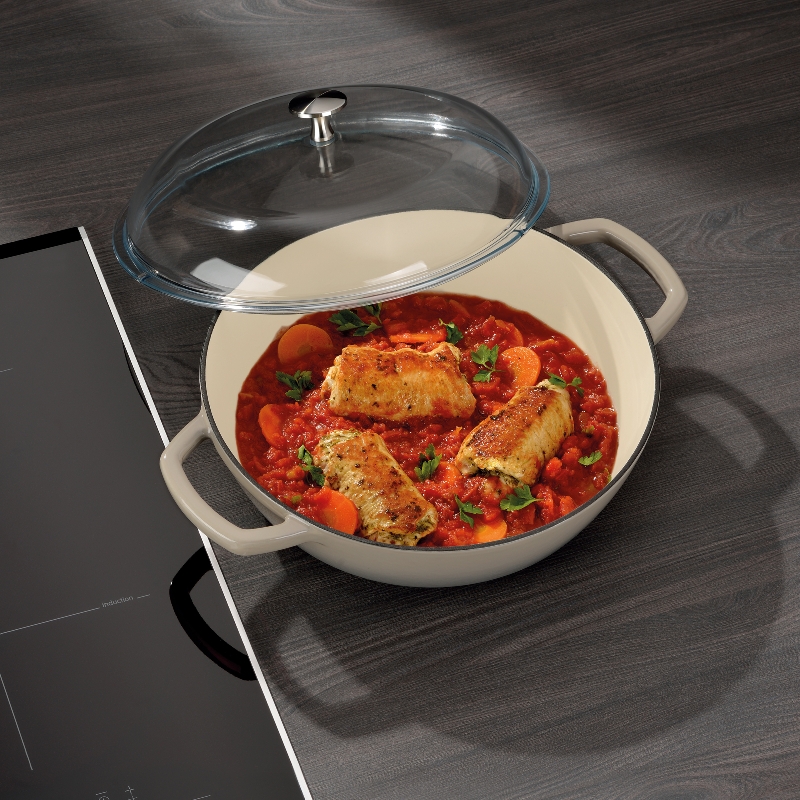 Сотейник чугунный с крышкой Kela Calido – это высококачественная кухонная посуда, предназначенная для длительного использования и создания вкусных блюд для всей семьи. Эмалированный чугун, известный своей способностью равномерно распределять и сохранять тепло. Это позволяет готовить блюда равномерно, с минимальным риском пригорания. Стеклянная крышка позволяет наблюдать за процессом приготовления без необходимости открывать сотейник, сохраняя тепло и аромат блюд. Оптимальный размер приготовления больших порций пищи, что делает его идеальным для семейных обедов или ужина с гостями. Простой и одновременно элегантный дизайн отлично впишется в любой интерьер кухни и придаст стильности сервированию стола.