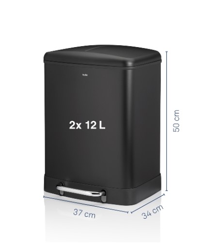 Ведро для мусора с педалью KELA Davino вмещает в себя 2 внутренних контейнера по 12 литров. Серия KELA Davino впечатляет своим простым дизайном и функциональностью. Благодаря своей прямой форме ведро Davino хорошо помещается в углу или прямо на внутренней стенке кухонного ящика. Ведра для мусора оснащены технологией Silent Close, то есть крышка при закрытии не просто падает вниз, а закрывается плавно и тихо. А если немного отодвинуть крышку назад, когда она открыта, то она останется в этом положении, и можно легко вынуть внутренний контейнер, чтобы опорожнить его. Затем можно опустить крышку, и она снова тихо закроется.