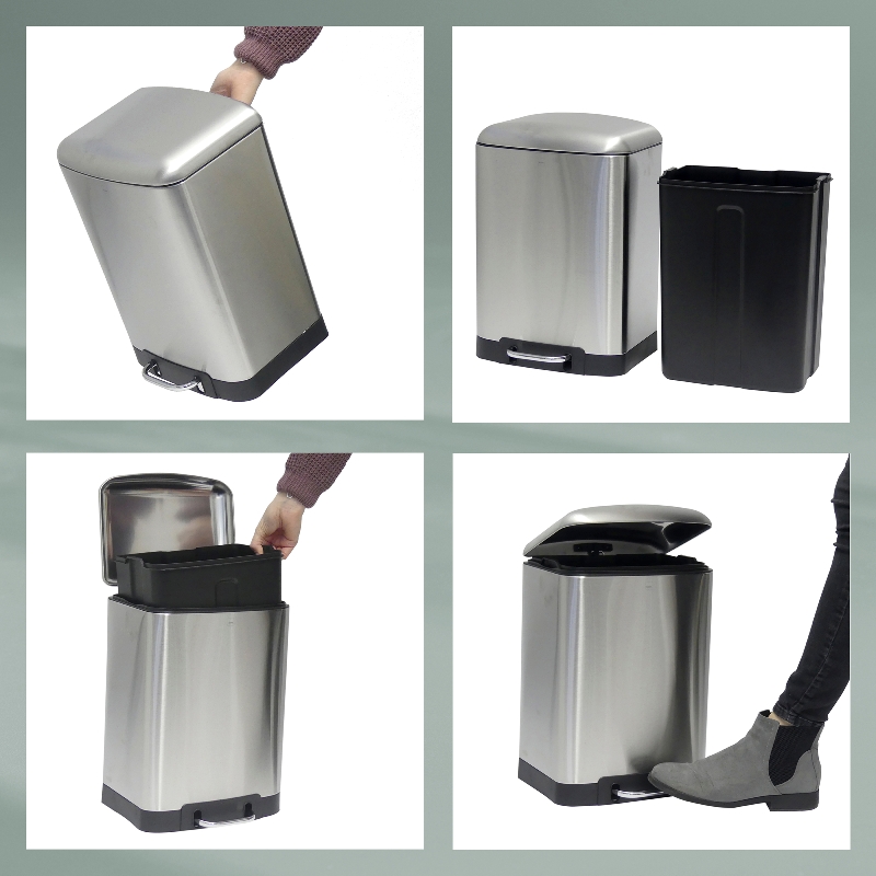 Мусорное ведро серии Davino изготовлены из нержавеющей стали или металла с порошковым покрытием. Они впечатляют своим простым дизайном и функциональностью. Педальные мусорные баки оснащены технологией Silent Close, а это значит, что крышка при закрывании не просто опускается вниз, а закрывается приятно и бесшумно. Если вы слегка отодвинете крышку назад, когда она открыта, она останется в этом положении, и вы сможете вынуть внутренний контейнер, чтобы опорожнить его. Затем вы можете нажать крышку обратно вниз, и она снова закроется плавно и бесшумно. Идеально и экономит место: благодаря своей прямой форме ведро Davino хорошо помещается в углу или прямо на стене. А если ведро нужно переносить, сзади имеется ручка для переноски. Поверхность вариантов светло-серого, темно-серого и белого цветов глянцевая, а остальных вариантов — матовая.