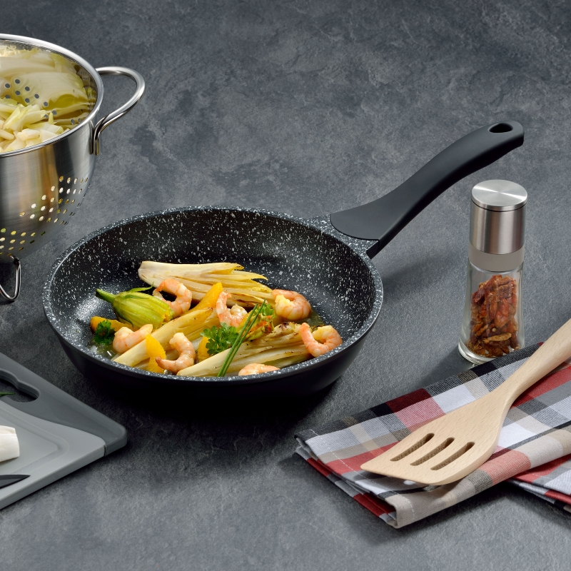 Особый способ обработки поверхности жарочной поверхности обеспечивает так называемая Oil-Control-System. Вы будете довольны равномерным распределением масла / жира на сковороде. Дно сковороды оснащено энергосберегающим основанием из нержавеющей стали. Это сокращает время нагрева.