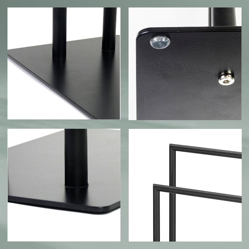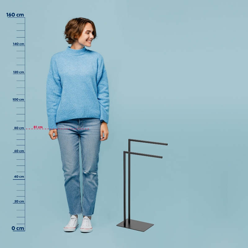 Держатель для полотенец с прямоугольным основанием и двумя слегка смещенными Г-образными вешалками для полотенец имеет элегантный и красивый дизайн. Придайте своей ванной комнате современный вид с помощью черных матовых аксессуаров серии Style. Резиновые ножки в нижней части держателя полотенец обеспечивают устойчивую стойку.