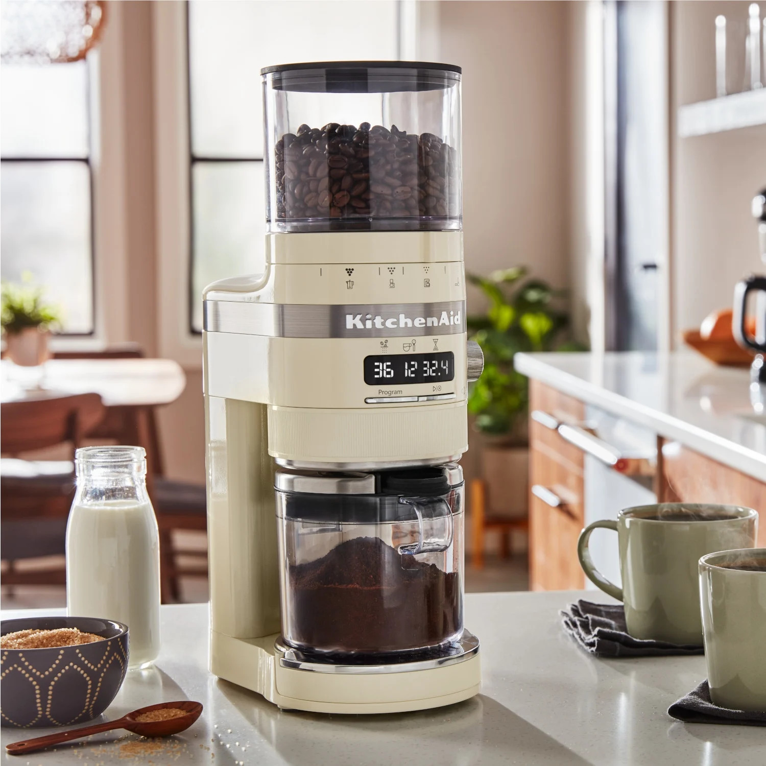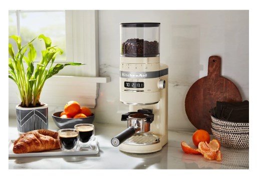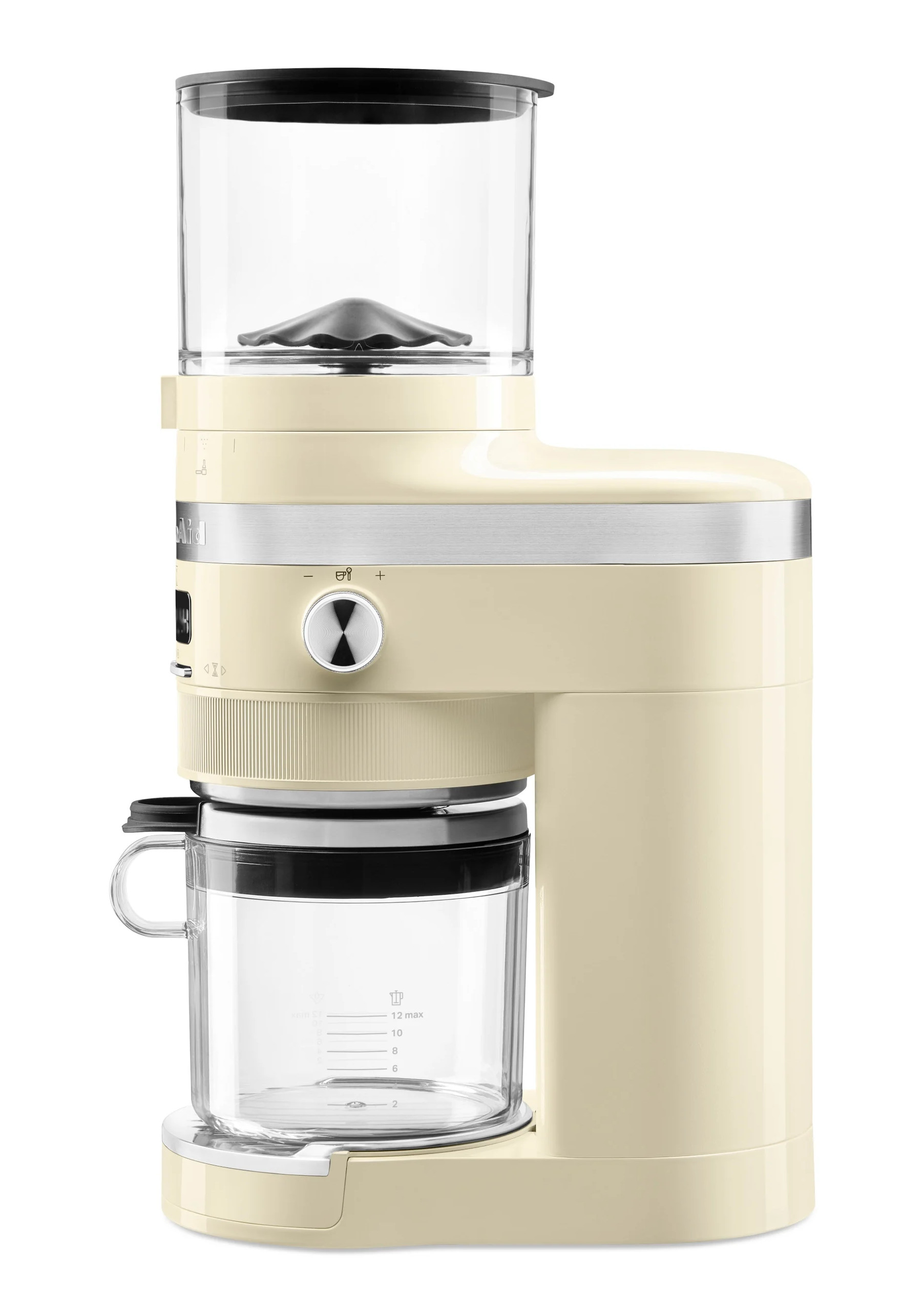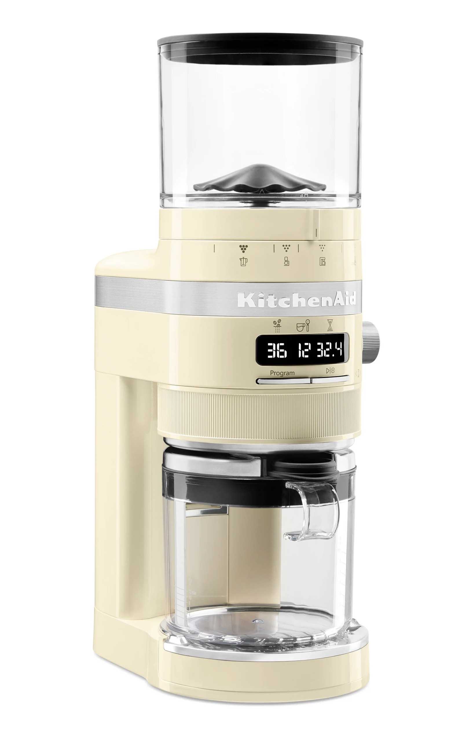 Кофемолки 5KCG8433 от бренда KitchenAid – это устройства современного вида с корпусом из качественного пластика. Они будут идеально работать с кофемашиной соответствующего цвета или в качестве дополнения к кофеварке или френч-прессу благодаря 70-градусному помолу, предлагая возможность точного выбора толщины помола в соответствии с методом заваривания и сортом кофейных зерен. Прочное основание с нескользящими ножками обеспечивает устойчивость, бесшумную работу и отсутствие вибраций. Кофемолки понятны в использовании – три ручки позволяют выбрать степень помола, время измельчения и размер порции. Время измельчения может быть разумно установлено самой кофемолкой, которая адаптирует его к размеру порции.