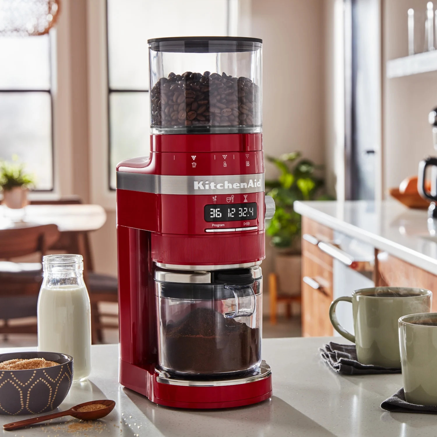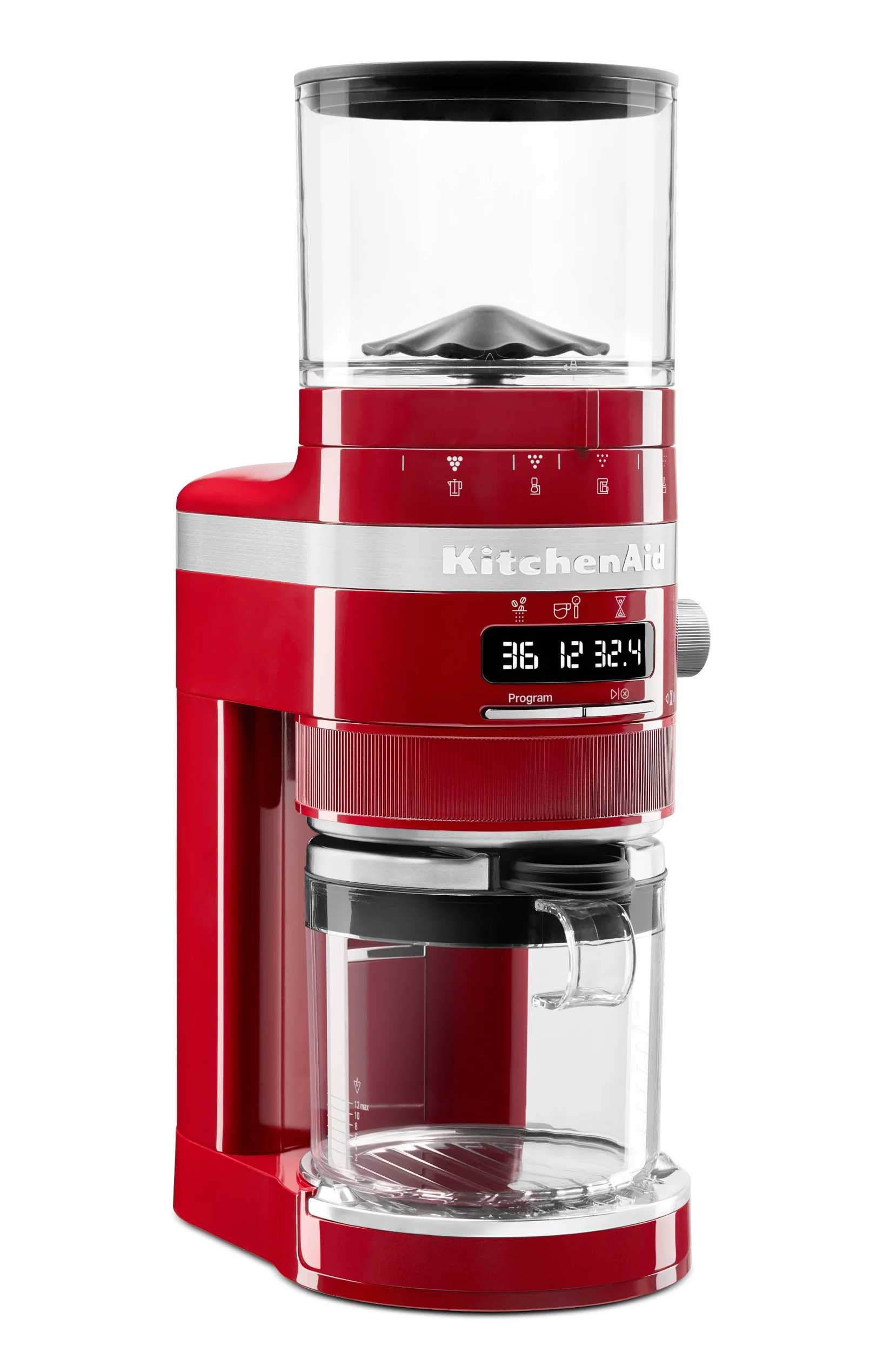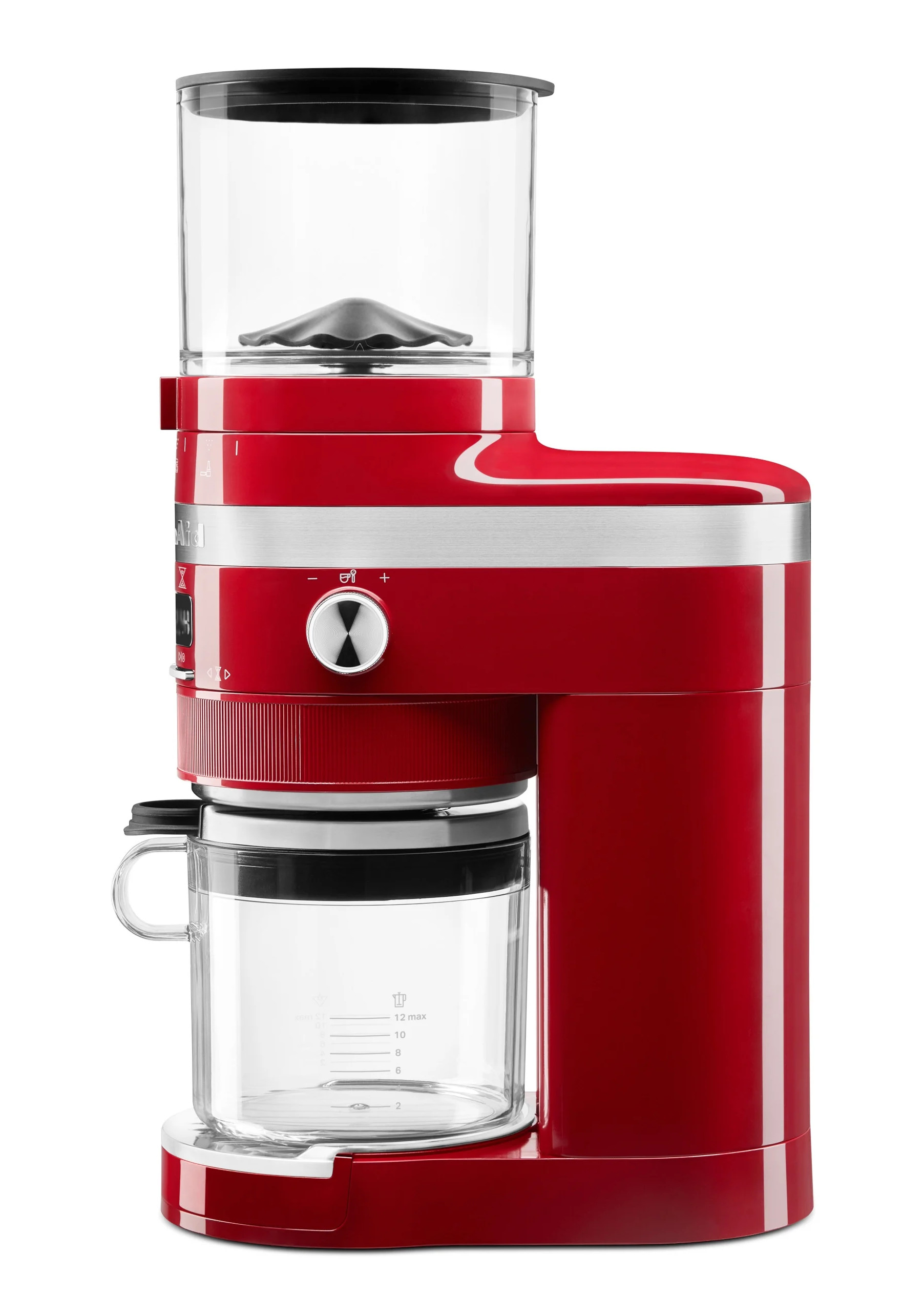 Кофемолки 5KCG8433 от бренда KitchenAid – это устройства современного вида с корпусом из качественного пластика. Они будут идеально работать с кофемашиной соответствующего цвета или в качестве дополнения к кофеварке или френч-прессу благодаря 70-градусному помолу, предлагая возможность точного выбора толщины помола в соответствии с методом заваривания и сортом кофейных зерен. Прочное основание с нескользящими ножками обеспечивает устойчивость, бесшумную работу и отсутствие вибраций. Кофемолки понятны в использовании – три ручки позволяют выбрать степень помола, время измельчения и размер порции. Время измельчения может быть разумно установлено самой кофемолкой, которая адаптирует его к размеру порции.