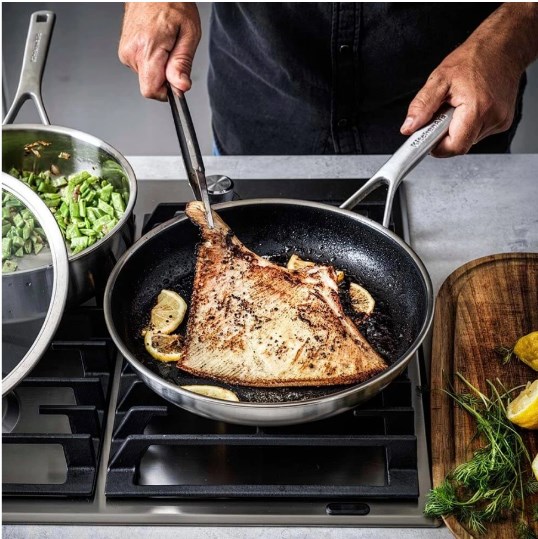 Многослойная нержавеющая сталь KitchenAid создана, чтобы работать всю жизнь. Коллекция KitchenAid Multi-Ply Stainless Steel обеспечивает эффективность и стиль в прекрасной форме матовой отделки. Алюминиевая сердцевина обеспечивает равномерный теплообмен. Литые ручки из нержавеющей стали остаются холодными. Изогнутые ободки для наливания без капель и удобные мерные отметки. В отличие от большинства посуды из нержавеющей стали, эта серия имеет герметичные ободки и внутреннюю бесшовную часть, которая предотвращает коррозию и пригодна для мытья в посудомоечной машине. Эта посуда предназначена для использования на протяжении всей жизни. Керамическое антипригарное покрытие без PFAS. Работает на всех плитах, включая индукционные. Посуда рассчитана на температуру духовки до 220C, что позволяет переносить блюда из плиты в духовку.