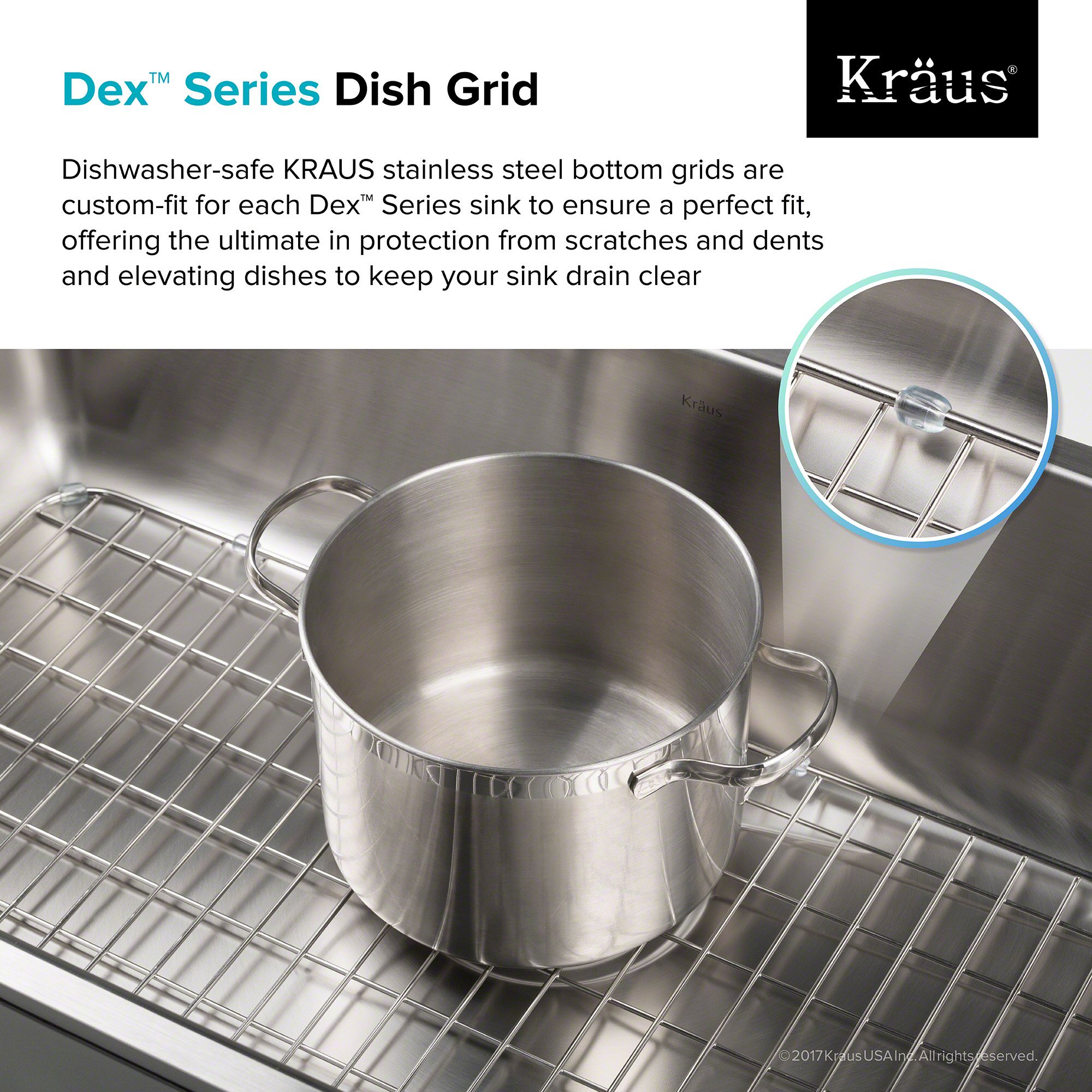 Защитите свою кухонную раковину и сделайте ее новой с донной решеткой из нержавеющей стали, идеально подходящей для раковины серии Dex ™. Держит посуду поднятой, чтобы помочь дренажу. Мягкие силиконовые бамперы защищают от царапин и потертостей.