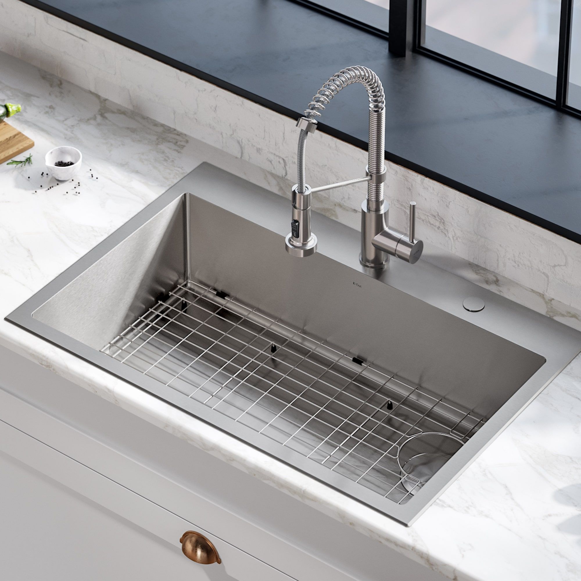 Раковина Loften ™ с большой вместимостью из нержавеющей стали придаст вашей кухне современный вид. Удобная конфигурация с двойным креплением позволяет устанавливать его как нижнее или верхнее крепление с любым типом кухонной столешницы. Изготовлена вручную из высококачественной нержавеющей стали T304 с пологим дном и изогнутыми канавками, обеспечивающими превосходный дренаж. Поставляется в паре с полупрофессиональным смесителем , обеспечивающим целостный внешний вид и оптимальную эффективность.