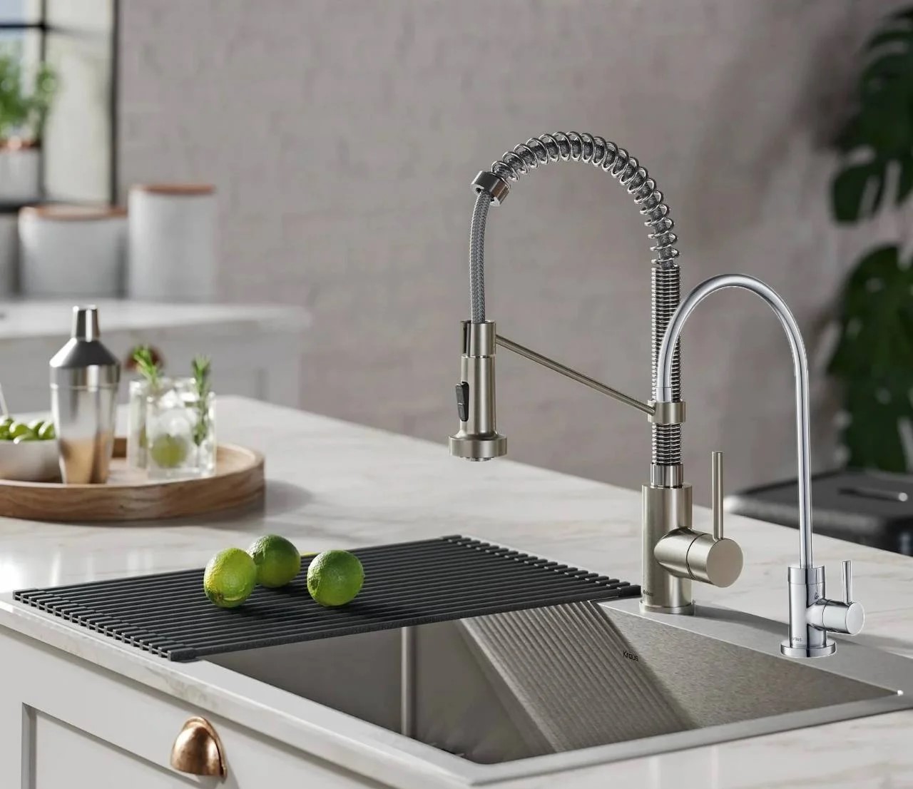 Kraus KPF-1610SFSCH + FF-100CH – стильный и практичный набор для кухни, сочетающий кухонный смеситель и отдельный кран для фильтрованной воды в одном решении. Это удобный выбор для тех, кто хочет иметь и обычную и очищенную воду, не перегружая пространство лишними элементами.