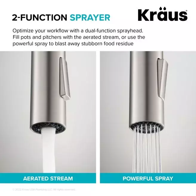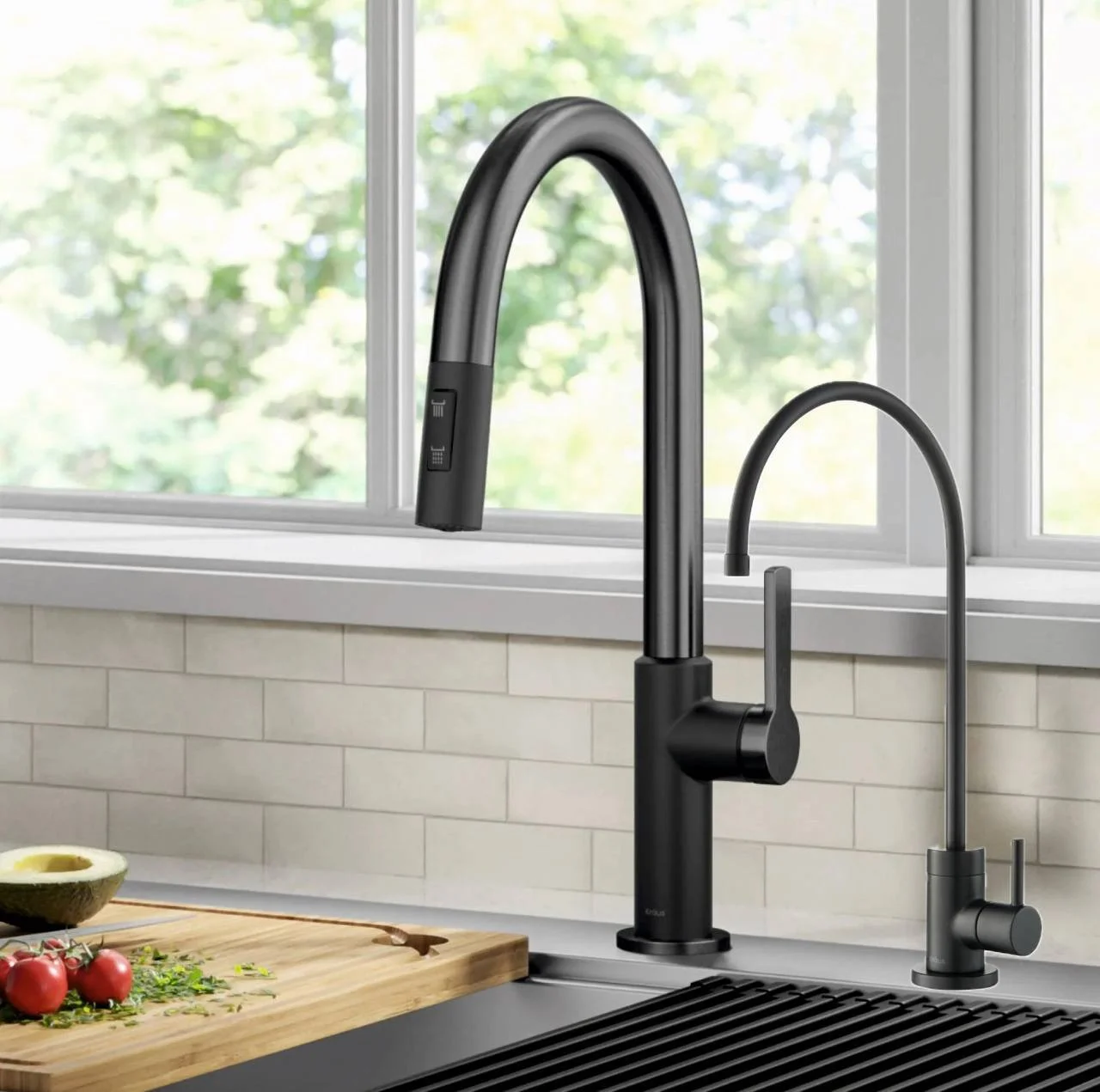 Kraus KPF-2820MBSFSB + FF-100MB – стильный и практичный набор для кухни, сочетающий кухонный смеситель и отдельный кран для фильтрованной воды в одном решении. Это удобный выбор для тех, кто хочет иметь и обычную и очищенную воду, не перегружая пространство лишними элементами.