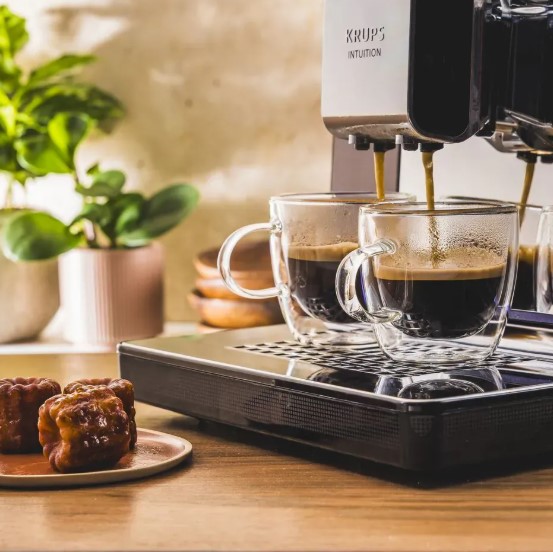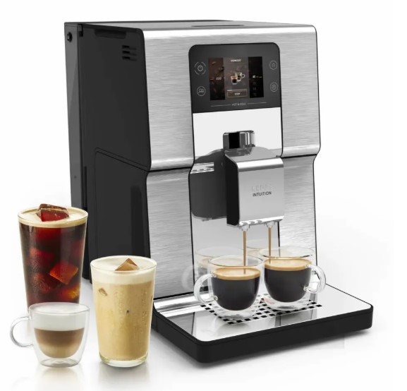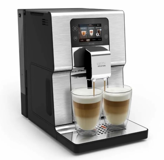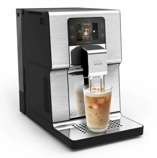 Krups Intuition Experience Hot Cold EA879EE0 – полностью автоматическая кофемашина, сочетающая современный дизайн, интеллектуальное управление и широкий спектр функций для приготовления как горячих, так и холодных напитков. Этот аппарат оснащен интуитивно понятным цветным сенсорным дисплеем Smart Screen, что делает управление простым и приятным – достаточно одного прикосновения, чтобы выбрать любимый напиток из меню. Он позволяет приготовить 2 чашки одновременно, что удобно приготовить кофе для себя и гостя за раз без лишних ожиданий.