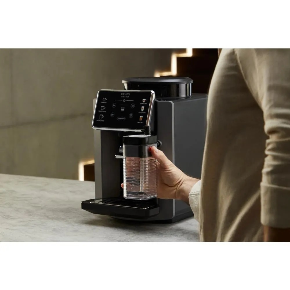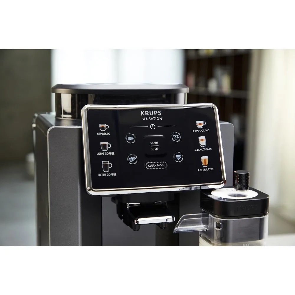 Для чашки идеального кофе достаточно лишь ваше желание — автоматическая кофемашина Krups Sensation возьмет всю работу на себя. Вам останется только самое приятное — наслаждаться ароматом и вкусом свежесваренного напитка. Обо всех тонкостях и нюансах позаботится технология Barista Inside, которая самостоятельно следит за каждым этапом приготовления кофе. Сенсорная панель управления, настраиваемые рецепты и световая индикация помогут получить чашку желанного напитка всего за несколько касаний. А полностью автоматическая программа очистки гарантирует, что вкус кофе останется неизменно великолепным.
