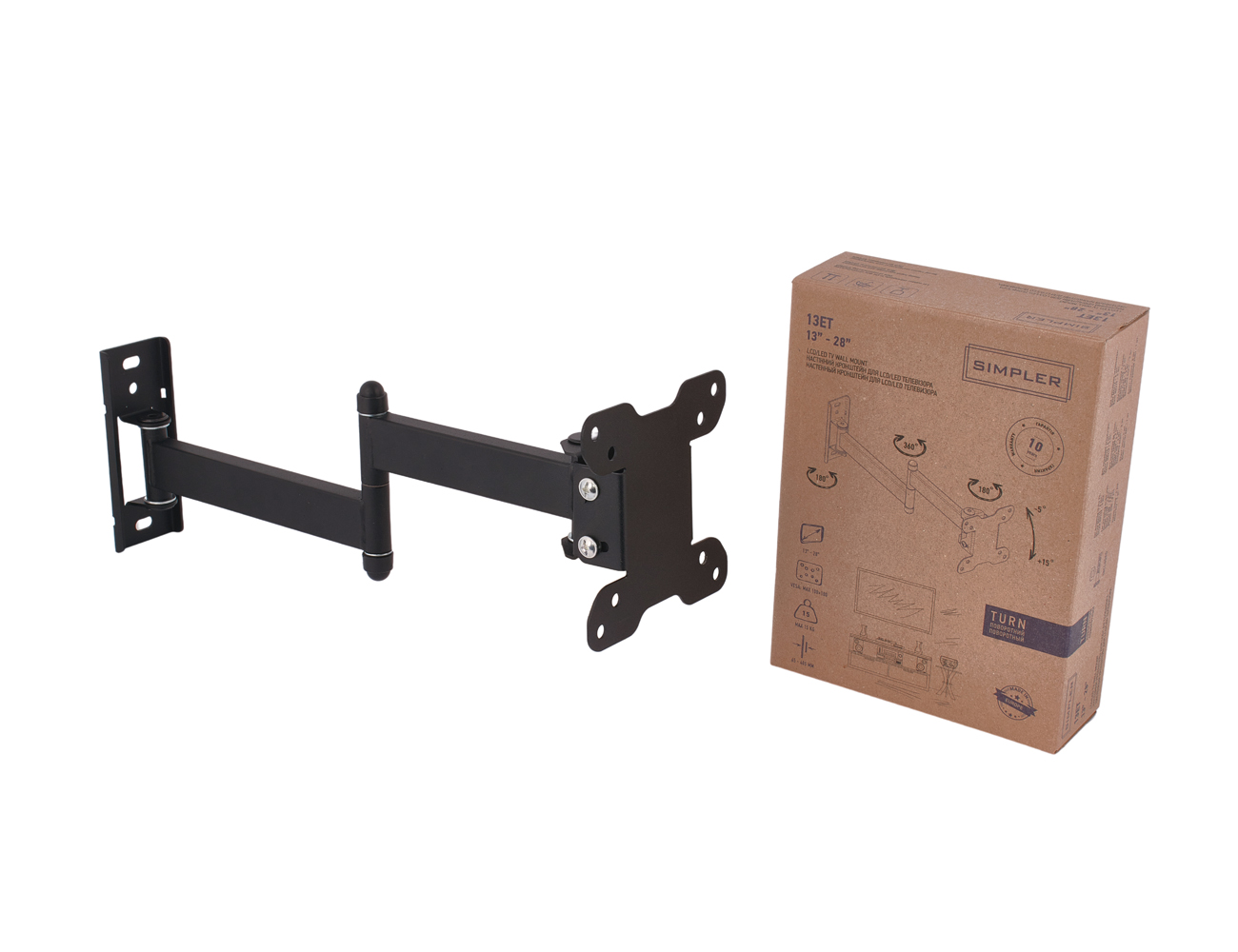KSL Simpler 13ET – настенный наклонно-поворотный кронштейн для телевизоров и мониторов, который обеспечивает удобное и безопасное крепление экрана на стене. Модель предназначена для устройств диагональю от 18 до 28 дюймов, поэтому хорошо подходит для небольших телевизоров или мониторов в квартире, офисе или коммерческом помещении. Конструкция кронштейна имеет поворотно-наклонную систему с четырьмя степенями свободы, что позволяет изменять положение экрана для комфортного просмотра. Благодаря возможности поворота и наклона пользователь может легко настроить оптимальный угол обзора и снизить блики от освещения или окон.
