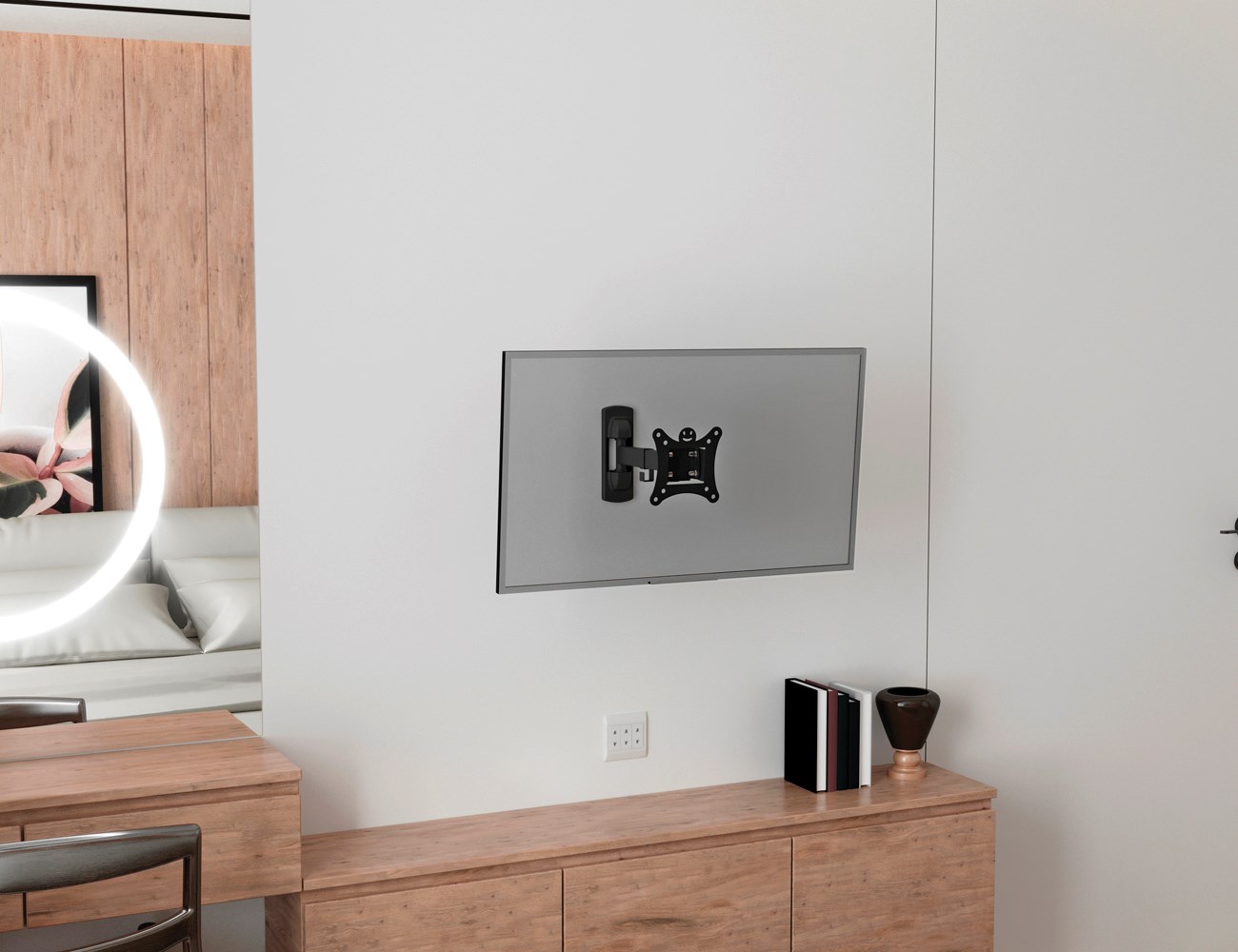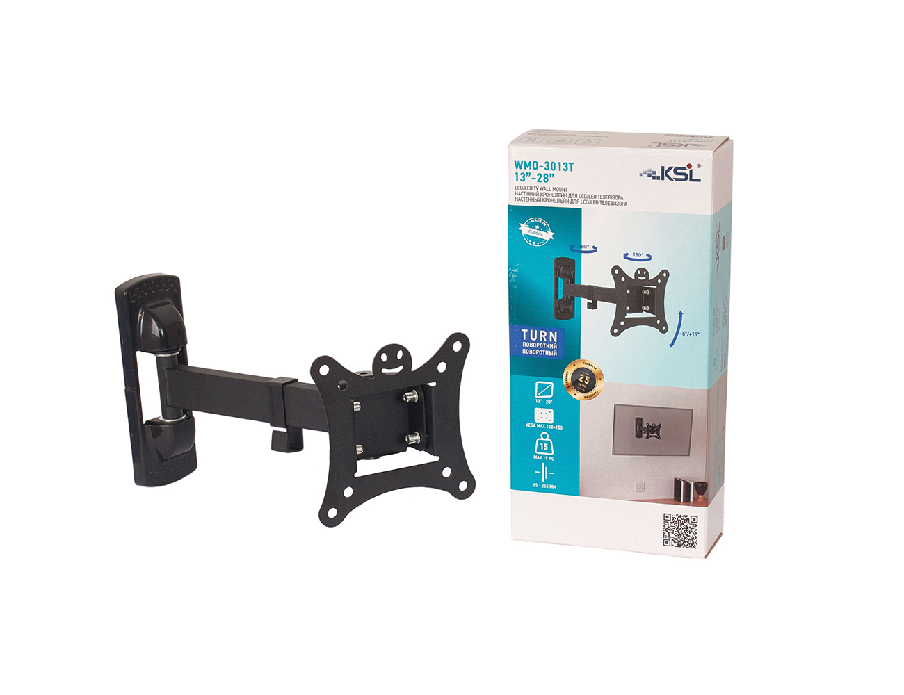 Кронштейн KSL WMO-3013T — компактный настенный наклонно-поворотный крепеж для телевизоров и мониторов с диагональю 13–28 дюймов. Благодаря шарнирной конструкции модель позволяет не только наклонять, но и поворачивать экран, обеспечивая максимально комфортный угол просмотра в небольших помещениях – на кухне, спальне, офисе или для установки монитора. Надежная металлическая конструкция гарантирует устойчивость и безопасную фиксацию техники. Кронштейн поддерживает стандарты VESA, что делает его совместимым с большинством компактных телевизоров и мониторов. Модель выдерживает нагрузку до 15 кг, а движущаяся система с несколькими степенями свободы позволяет изменять положение экрана в зависимости от места просмотра. Расстояние от стены регулируется, поэтому телевизор можно компактно прижать к стене, так и выдвинуть вперед для поворота. Угол наклона регулируется, что позволяет избегать бликов и оптимизировать обзор с разных точек комнаты. В комплект входят все необходимые элементы монтажа, включая крепеж, инструкцию и набор винтов для быстрой установки.