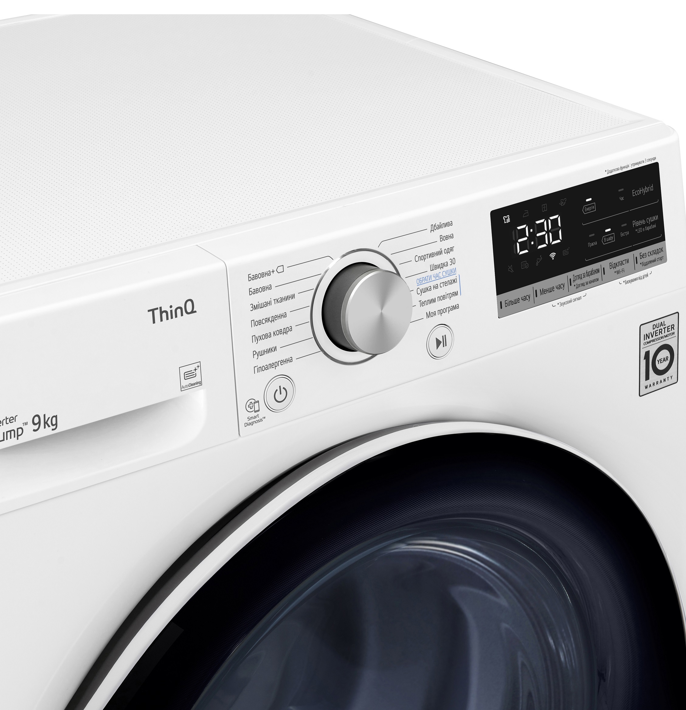 | Функции | Таймер отсрочки. Smart Diagnosis. Автоматическая очистка конденсатора. Автоперезапуск. Подсветка барабана. Гибридная сушка EcoHybrid. Технология DUAL Inverter Heat Pump.(Dual Inverter Compressor)Двойной фильтр. Звуковой сигнал окончания цикла. Инверторный мотор с прямым приводом. Автовзвешивание. Перенавешиваемая дверь.Сенсорное определение сухости белья |