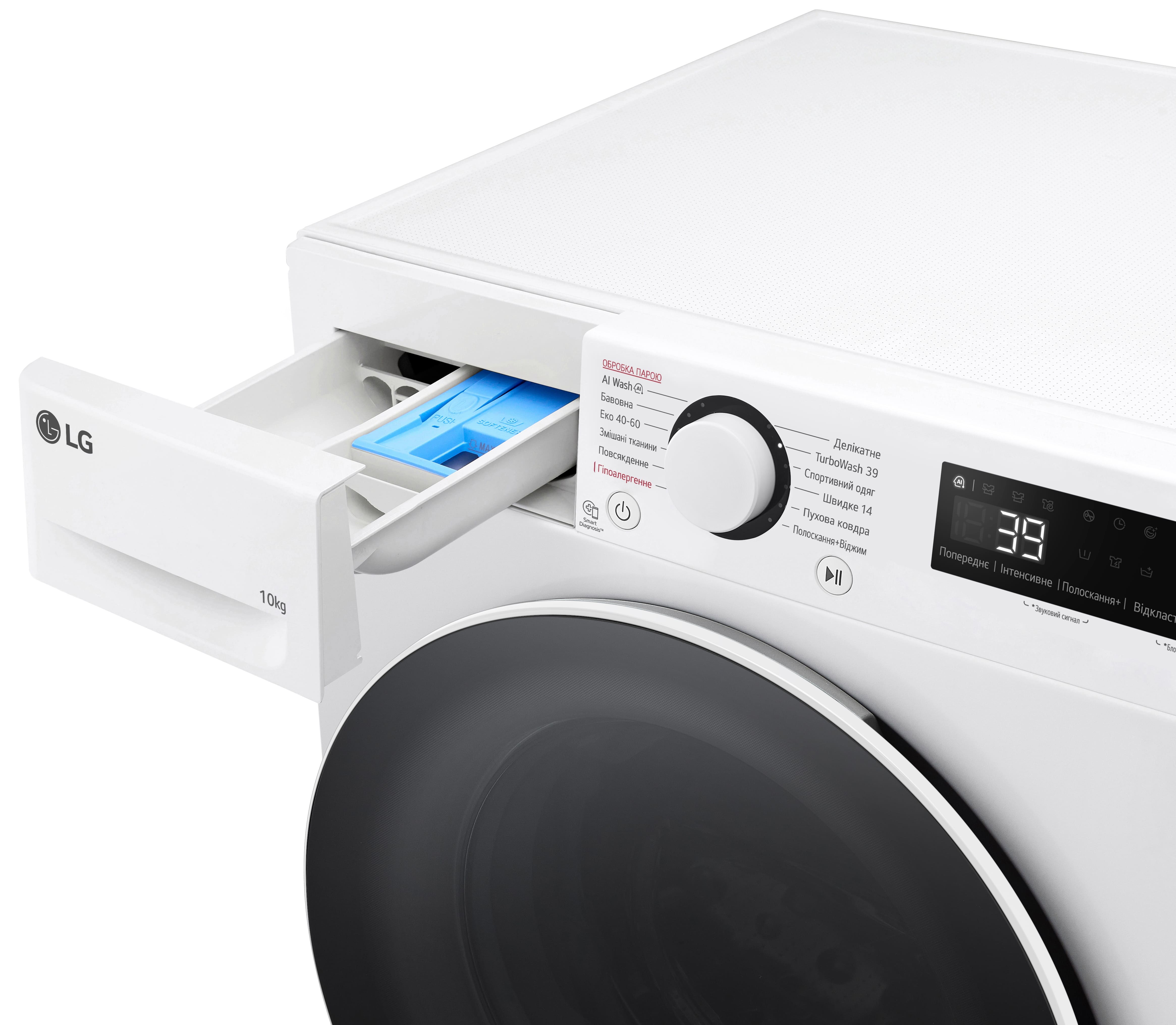 | Программы | Спортивная одежда, Полоскание + Отжим, Пуховые одеяла, Предварительная стирка, Гипоаллергенная стирка, TurboWash 39, Эко 40-60, Смешанные ткани, Деликатная стирка, Повседневная стирка, Стирка из ИИ (AI Wash), Быстрая 14 |
