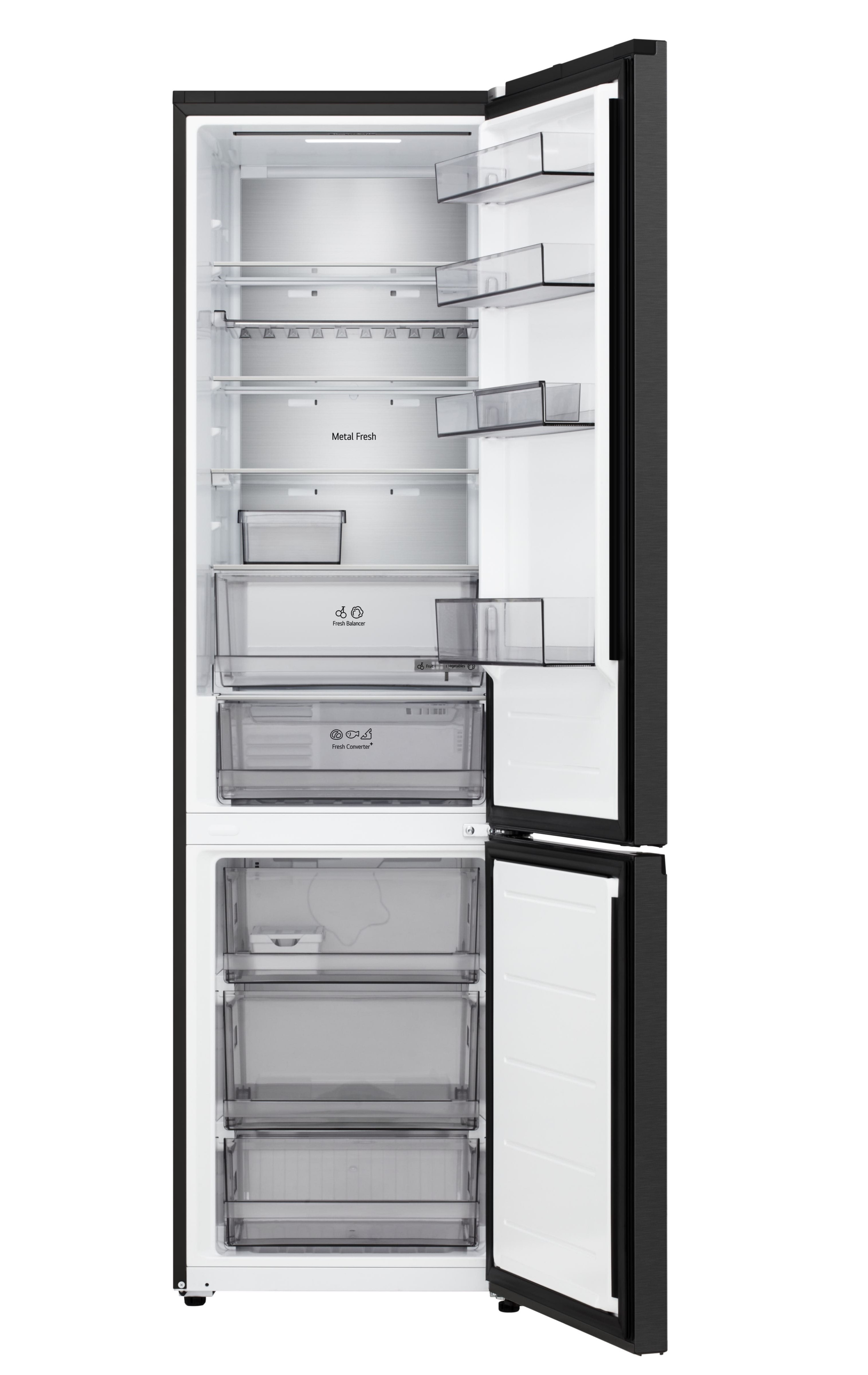 LG GC-B509ETSM – современный двухкамерный холодильник с нижней морозильной камерой, предназначенный для удобного хранения продуктов и эффективного охлаждения. Модель сочетает в себе большой внутренний объем, инверторный компрессор и технологии равномерного распределения холодного воздуха, что помогает дольше сохранять свежесть продуктов. Благодаря минималистичному дизайну холодильник легко интегрируется в современную кухню.