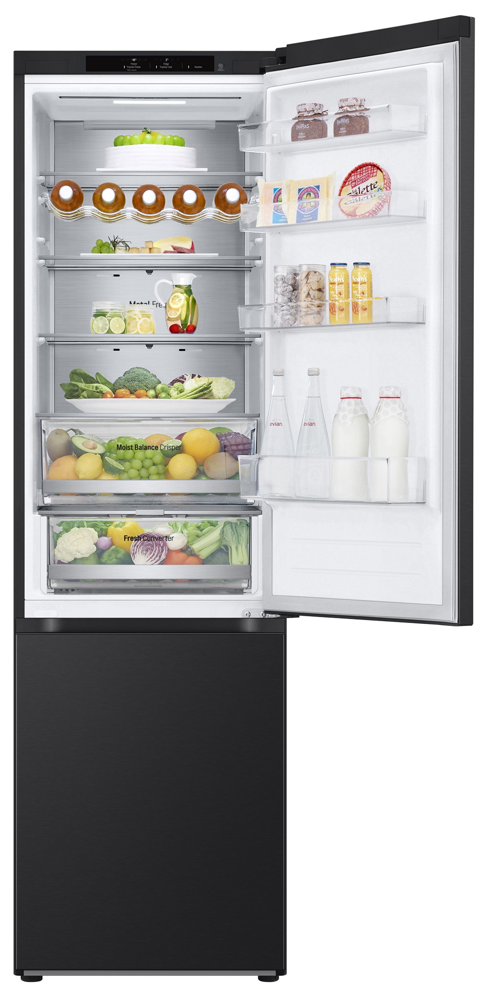 Эта модель оснащена практичной морозильной камерой, нижнее расположение позволяет удобно доставать замороженные продукты. Инверторный компрессор обеспечивает низкий уровень шума и высокую энергоэффективность. Все полочки изготовлены из стекла, четыре большие дверные корзины упорядочивают маленькие продукты, а две вместительных контейнера для овощей позволяют легко планировать покупки.