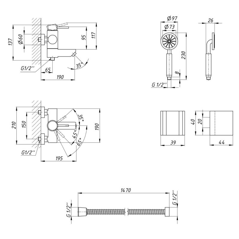 | Комплектация | Смеситель, лейка для ручного душа, душевой шланг, кронштейн для ручного душа, крепежи. |