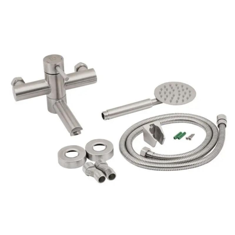 Смеситель для ванны Lidz (NKS) 12 32 006-1 выполнен из нержавеющей стали, что гарантирует длительный срок эксплуатации. Для включения подачи воды достаточно поднять рычаг и повернуть его в необходимую сторону. Смеситель монтируется на стену над ванной с помощью крепежных элементов, которые входят в комплект. Круглые розетки скроют погрешности установки на отделке. Держатель лейки крепится также на стену. Таким образом, ваши руки будут свободны во время принятия душа.
