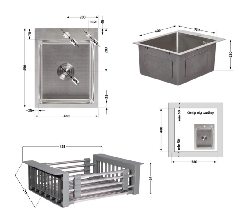 | Комплектация | мойка, сифон, слив-перелив, дозатор, корзина |