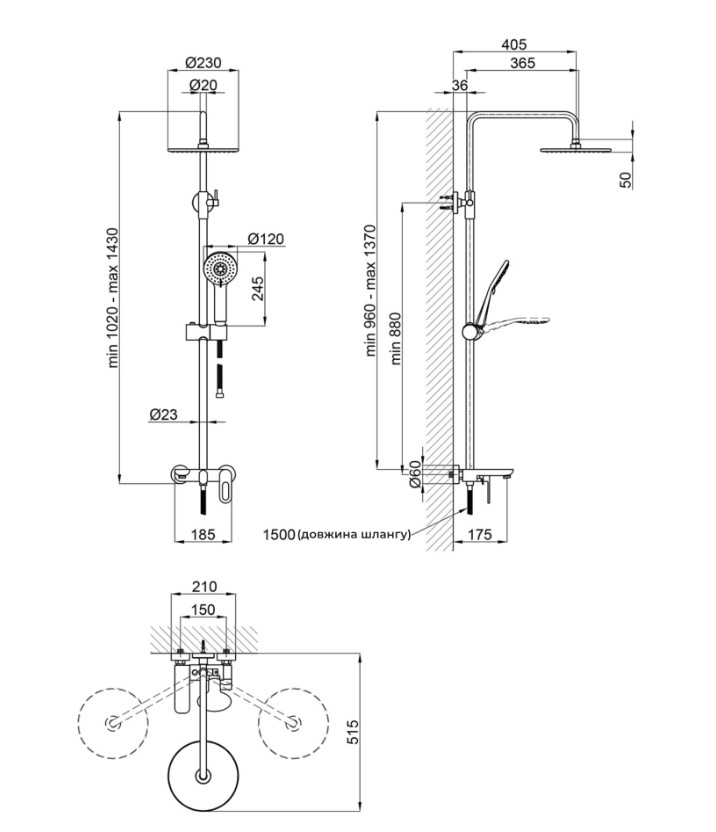 | Комплектация | верхний душ, кронштейн, штанга, ручной душ, душевой шланг, смеситель |