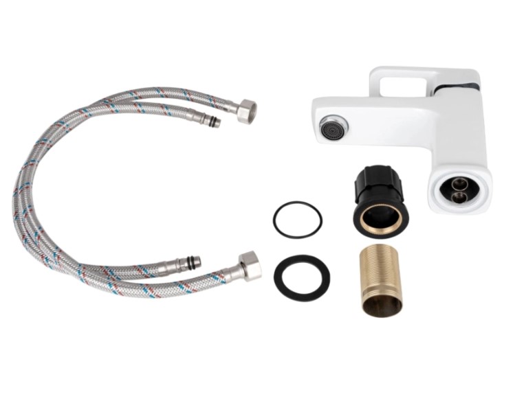 Смеситель для раковины Lidz Wawel 001 LDWAW001WHI45397 изготовлен из цинка в белом. Интенсивность водного потока и температура регулируются перемещением рычага. Изделие крепится врезным способом с помощью гибкой подводки и креплений, которые комплектуются вместе с ним в одно грузовое место.