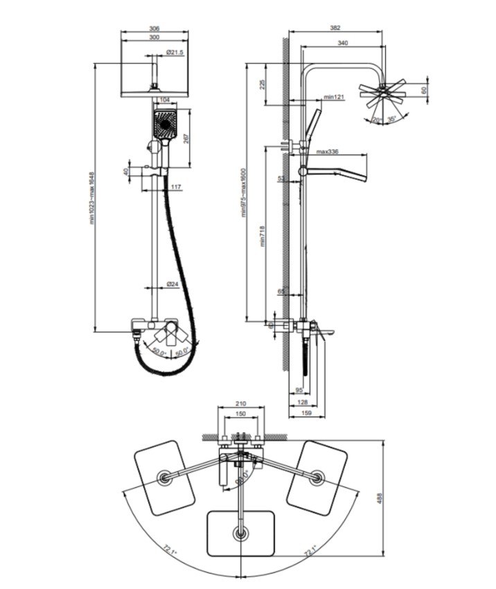 | Особенности | регулируемый угол верхнего душа, система предотвращения скручивания шланга |