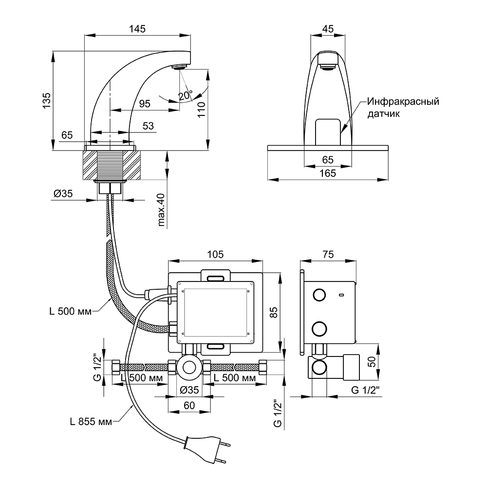 | Комплектация | смеситель, гибкий подвод, блок питания, крепежные детали |