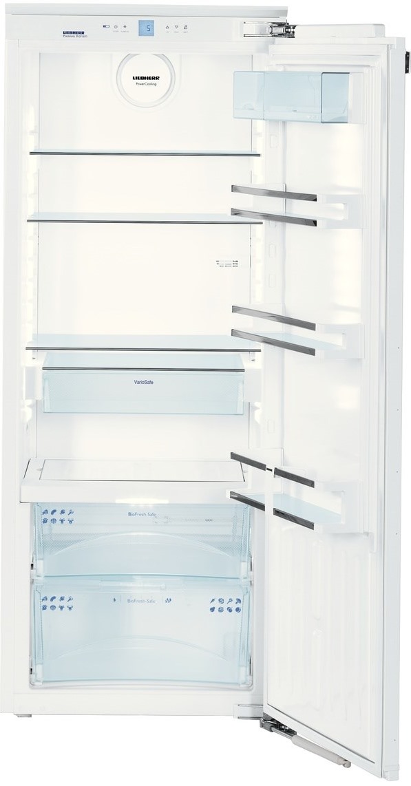 Liebherr IKBP 2750 имеет вместительное холодильное отделение с шестью полками и двумя секциями BIOFRESH. Из них один отсек HydroSafe с повышенной влажностью и один DrySafe с пониженной влажностью. Благодаря внутренней температуре этих камер чуть выше 0°С вы сможете хранить продукты без замораживания в 10 раз дольше, чем в простом определении холодильника. Основная камера холодильника с капельным типом оттаивания оснащена пятью регулируемыми по высоте полочками для хранения продуктов и дверными полками для охлаждения бутылок, баночек и мелких упаковок. Полочки изготовлены из высокопрочного стекла с красивым обрамлением из нержавеющей стали.