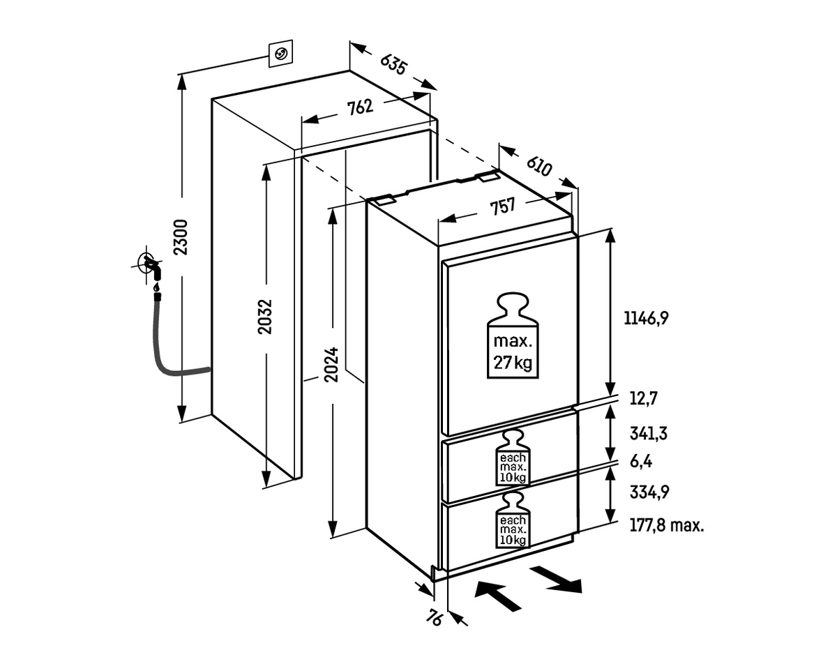 | Мощность заморозки, (кг/сутки) | 7.6, производительность льда 1.2-2.7 кг в сутки, льдогенератор с постоянным подключением к воде |