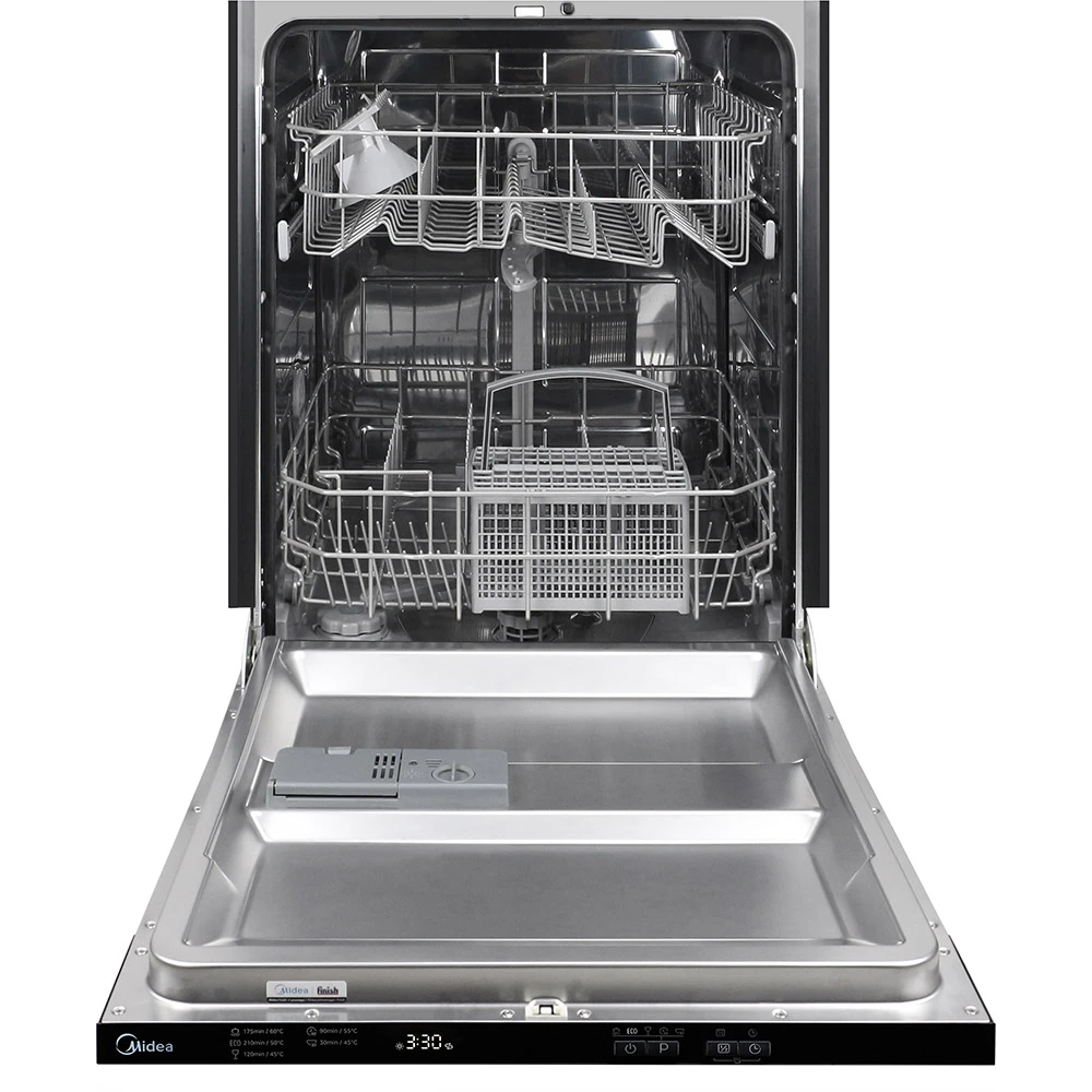Midea MID60S060-C – это полновстроенная посудомоечная машина шириной 60 см, которая закрывает базовые потребности семьи в ежедневном мытье посуды без переплаты за сложные функции. Модель делает ставку на практичность и универсальность: она вмещает до 12 комплектов посуды, хорошо подходит для стандартной кухни и легко интегрируется в мебель полностью исчезая за фасадом. Такой формат особенно удобен для тех, кто хочет получить аккуратный вид кухни и понятную технику без лишних настроек.