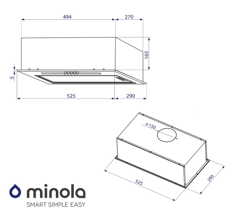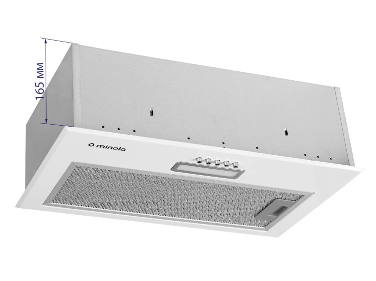 Встраиваемая вытяжка Minola HBI 5214 WH 700 LED оснащена одним двигателем мощностью 65 Вт. Максимальная производительность устройства в режиме отвода воздуха составляет 700 м3/ч. Это позволяет эффективно удалять испарения, нежелательные запахи и копоть, которые образуются в процессе приготовления пищи. Благодаря великолепным эргономичным качествам, которыми наделена модель, она подойдет как к маленькой, так и стандартной кухне. Часть конструкции устройства, которая должна быть скрыта от глаз, полностью прячется в шкафу, а рабочая часть остается на виду и органически дополняет общий дизайн. Компактный корпус Super Slim представляет собой оптимальное решение. Благодаря его высоте всего 165 мм вытяжка идеально подходит для монтажа в помещениях с ограниченным пространством, не занимая много места. Вытяжка изготовлена из крашеного металла черного цвета. Этот материал, кроме визуальной привлекательности, очень легок в уходе и обладает высокой устойчивостью к внешним воздействиям.