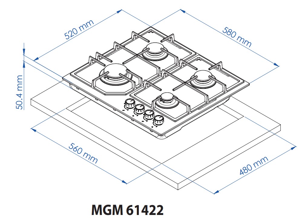 Minola MGM 61422 I – это газовая варочная поверхность стандартной ширины, предназначенная для ежедневного интенсивного использования и комфортного приготовления различных блюд. Модель оснащена конфорками разной мощности, чугунными решетками высокой прочности и фронтально-боковой панелью управления, которая обеспечивает удобство и безопасную эксплуатацию. Поверхность изготовлена из нержавеющей стали AISI 304, что гарантирует долговечность, стойкость к коррозии, перепадам температур, химическим воздействиям и механическим повреждениям. Такой материал долго сохраняет первоначальный вид, а уход за ним занимает минимум времени.